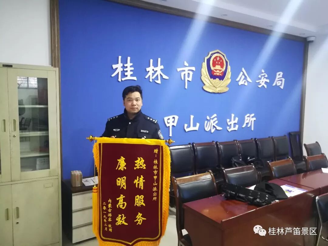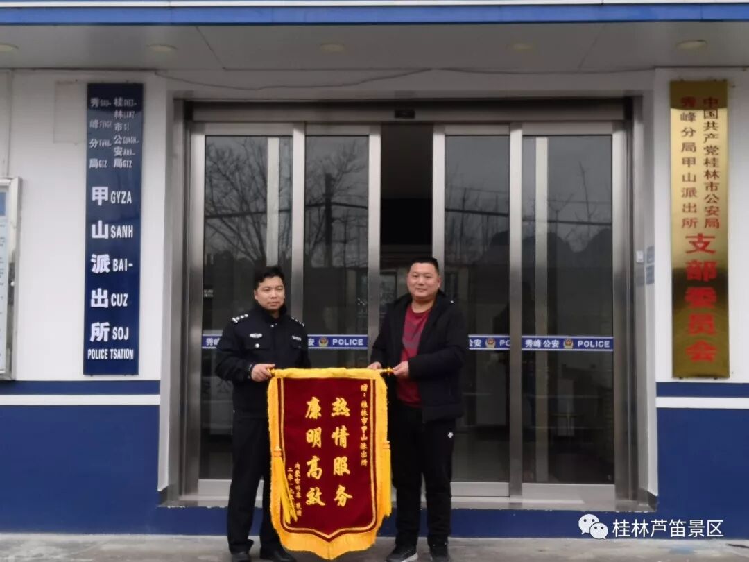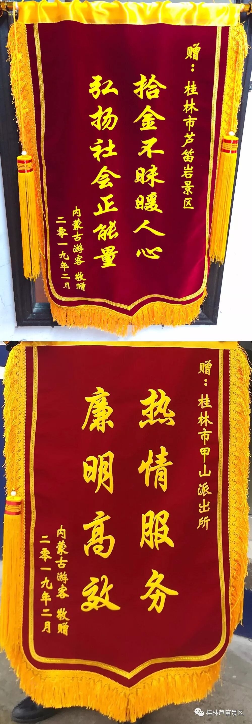 张先生夫妇回到内蒙后,内心依旧久久不能平静,怀着对景区和桂林市甲山派出所万分感激的心情,于是出现了开头收到大锦旗的一幕。