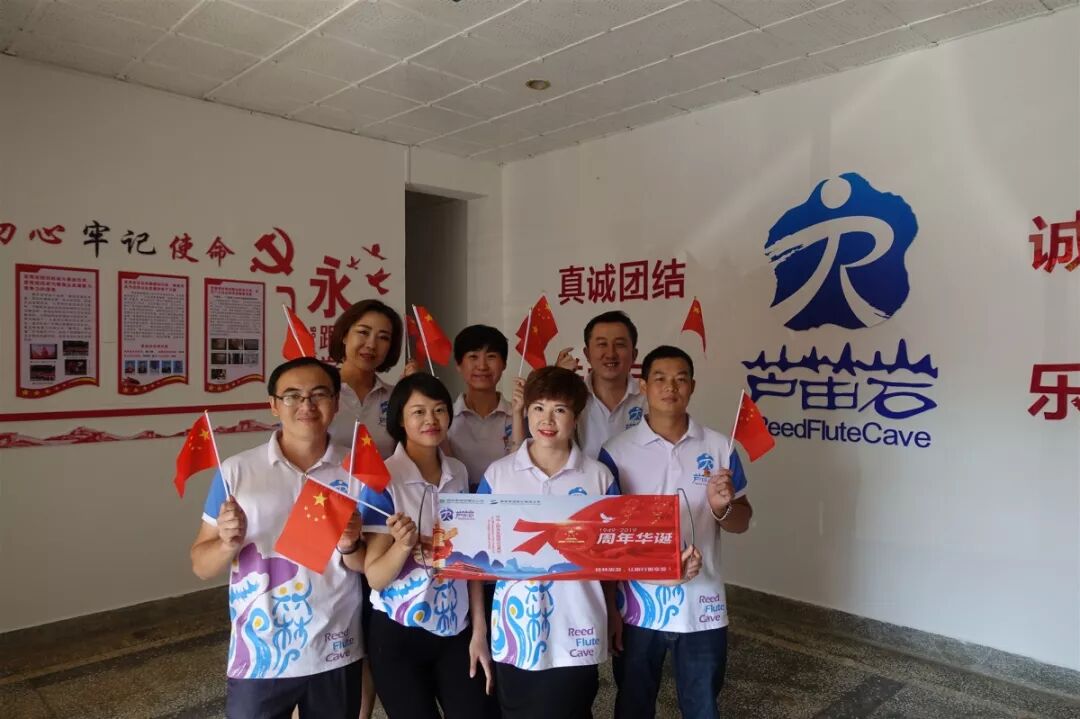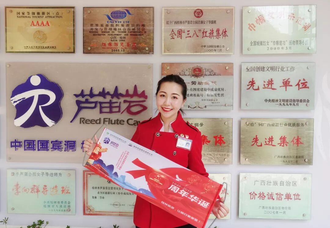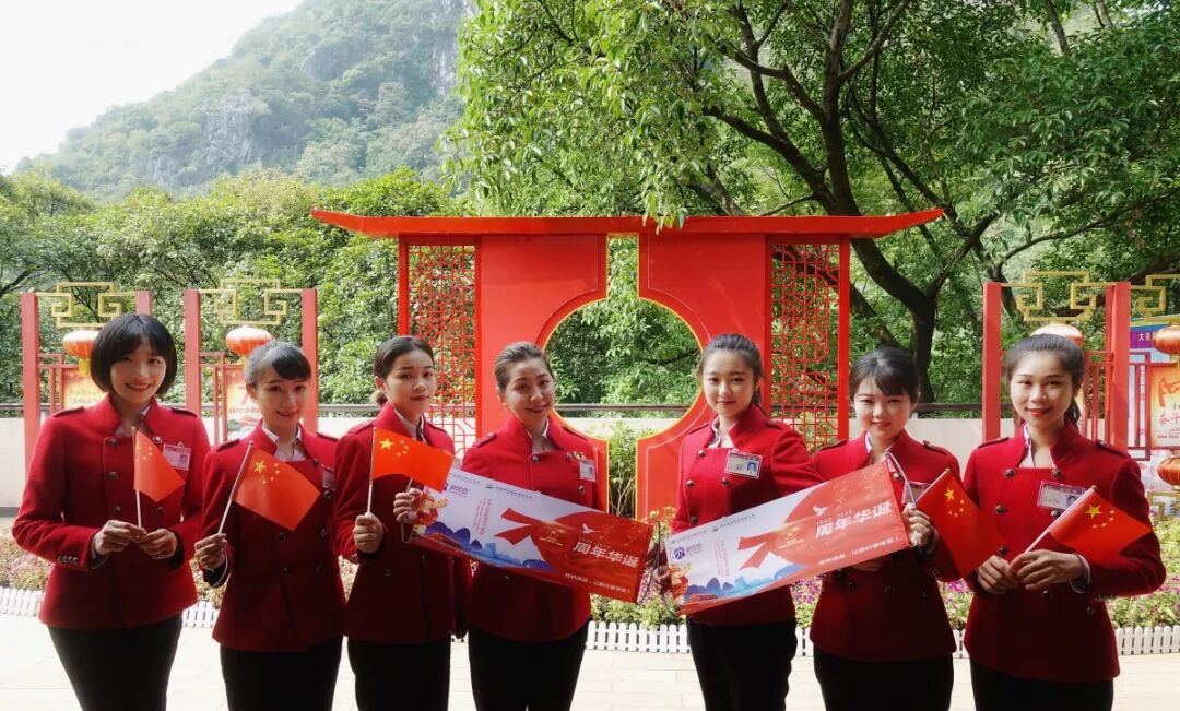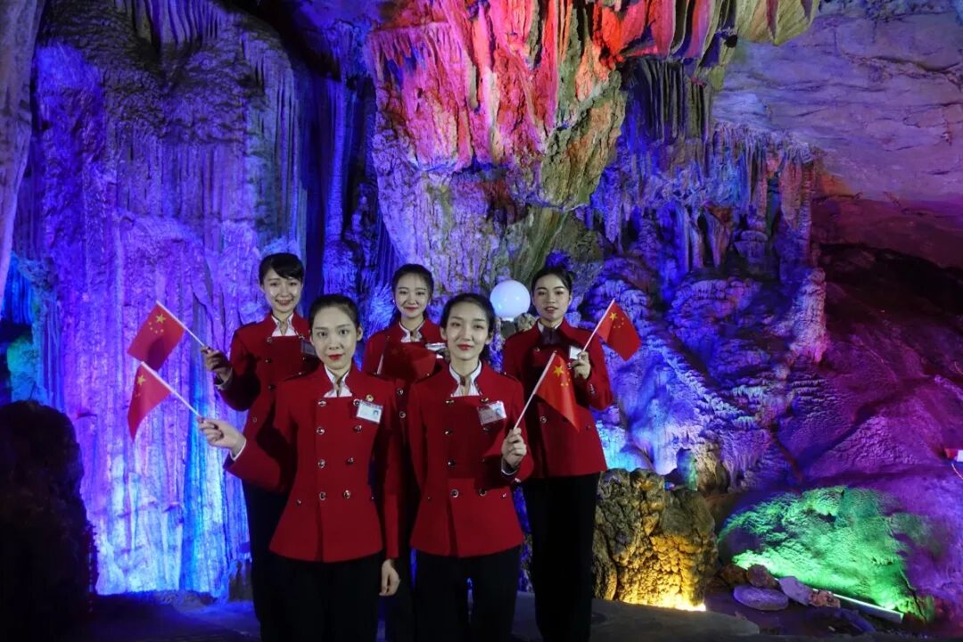 祖国母亲960万平方公里陆地疆土,300万平方公里管辖海域,我们爱你灵动婉约的南方,也爱你雄浑辽阔的北国。长江黄河、三山五岳、洞庭潇湘、苍洱毓秀,我们爱你巍峨挺立的大山,也爱你涓涓轻盈的秀。在这个举国欢庆的日子里,芦笛景区全体员工坚守在一线岗位,为桂林旅游事业默默奉献,用实际行动和赤子之心向祖国母亲的生日献礼。芦笛景区全体员工祝福祖国母亲繁荣昌盛,辉煌永存!