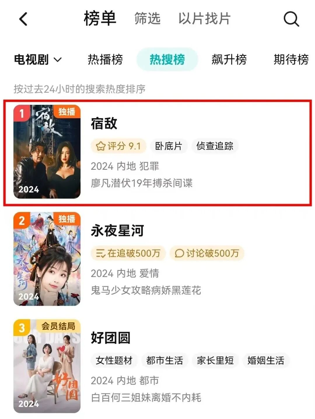 该剧已荣登腾讯视频电视剧热搜榜第1名