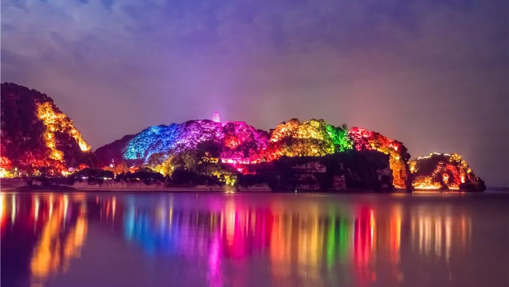 到了夜晚,乘船游于江面之上,船身激荡起涟漪,江面被光影笼罩,楼宇倒映在江面上,泛着五彩的光晕,像是缀满了闪闪发光的星。