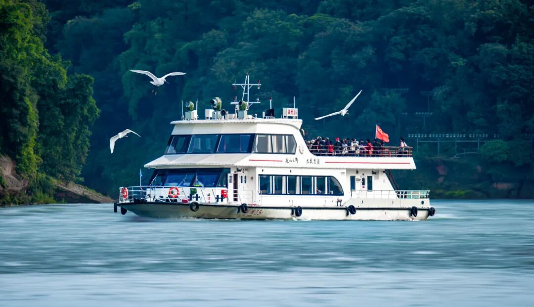 乘坐游船从乌尤寺码头向乐山大佛脚下行去,三江汇流、鸥鸟齐飞、佛与山齐,各峰胜景一览无余。人在江中游,佛的伟岸与江的广阔都纳入眼中,极具视觉冲击力。