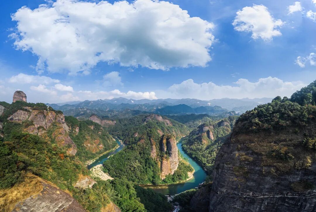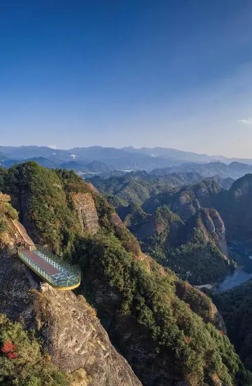 资江天门山与资江为伴,坐落在桂林北部的资源县,是丹霞地貌的经典景区。景区在天门山山脊处,打造了玻璃观景平台,给游客朋友们提供了观赏风景的特殊角度。