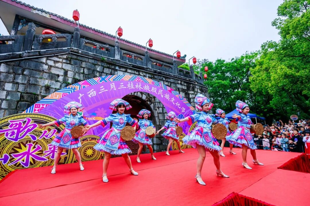 当天下午,“歌从山水来·广西三月三桂林旅股民族文化节”在古南门隆重举行,五湖四海的游客沉浸式体验了广西特色的民族文化活动和热烈氛围。晚上的“歌从山水来·水上音乐会”也让乘船夜游的游客们流连忘返。