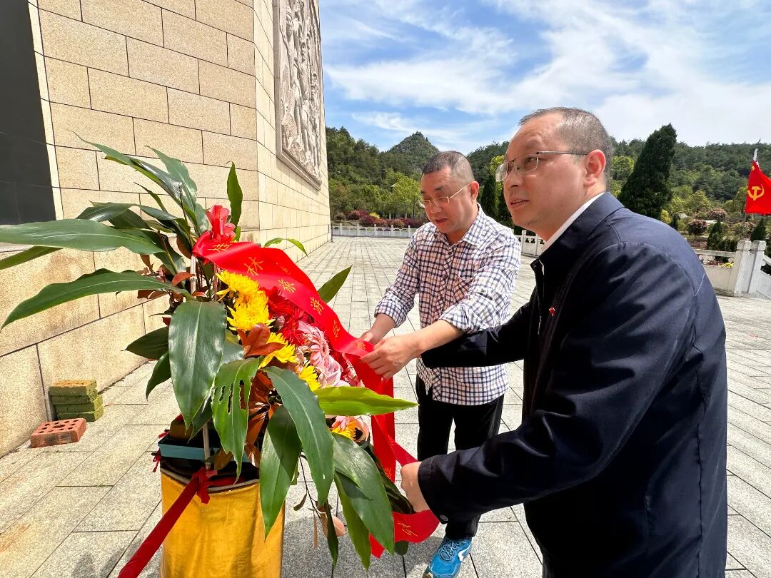 ▲公司党委副书记邓军、纪委书记蒋邦立向红军烈士敬献花篮