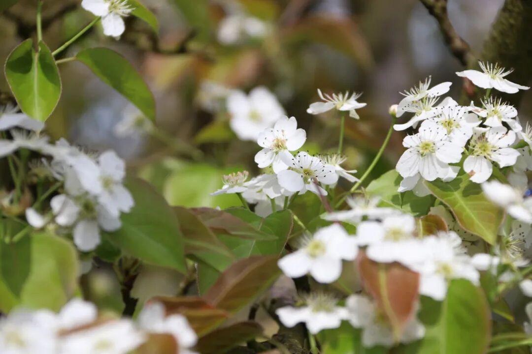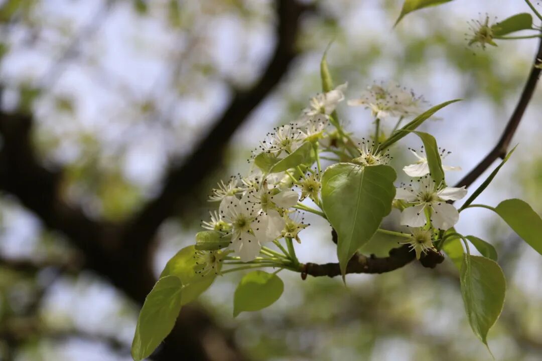 ▲职工们在美丽的梨园打卡留念