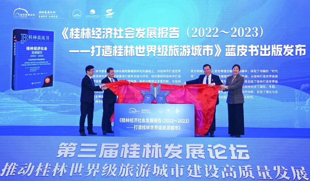 ▲《桂林经济社会发展报告(2022-2023)——打造桂林世界级旅游城市》蓝皮书发布