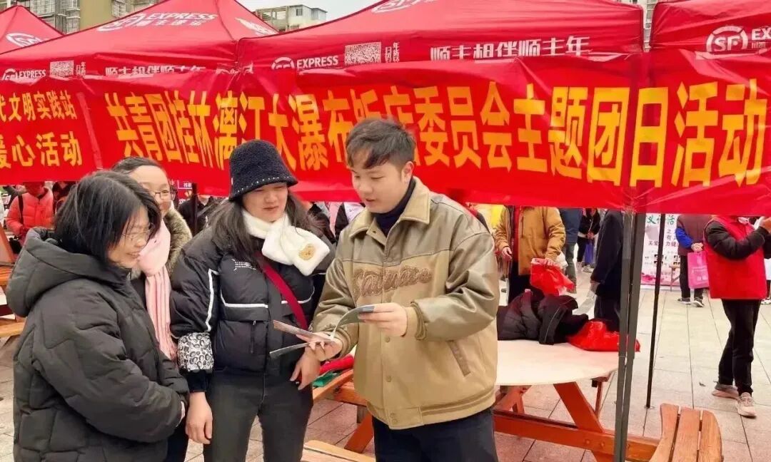 桂林漓江大瀑布饭店团支部积极参加由秀峰区区委宣传部、文明办组织开展的学雷锋志愿服务活动,大力弘扬奉献、友爱、互助、进步的志愿精神,宣传最新的桂林旅游资讯及饭店餐饮住宿利好政策,为广大游客和市民提供便利,办好群众关心事。