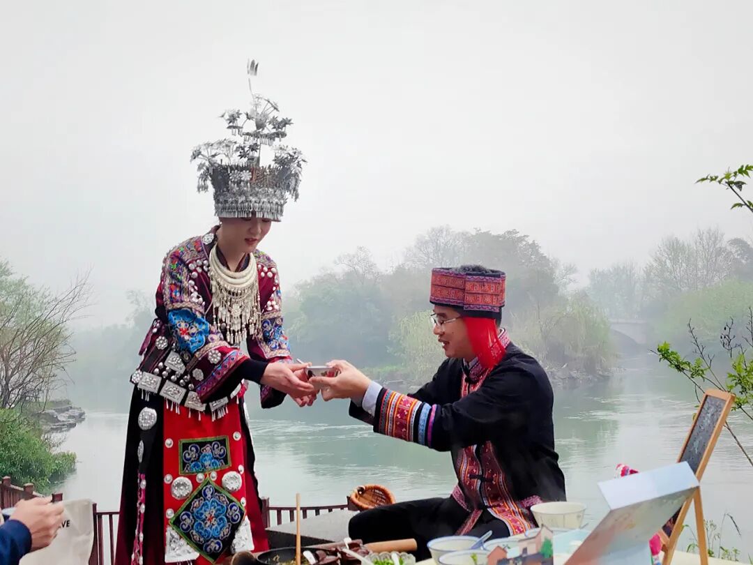 “山歌好比春江水咧~~~~”广西三月三怎么少得了民俗唱山歌呢?景区精心准备了“山歌迎宾”节目。壮族歌节三月三,高山打鼓远传扬。山歌当茶又当酒,欢迎贵宾到壮乡。