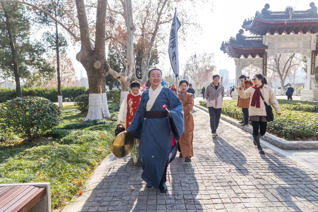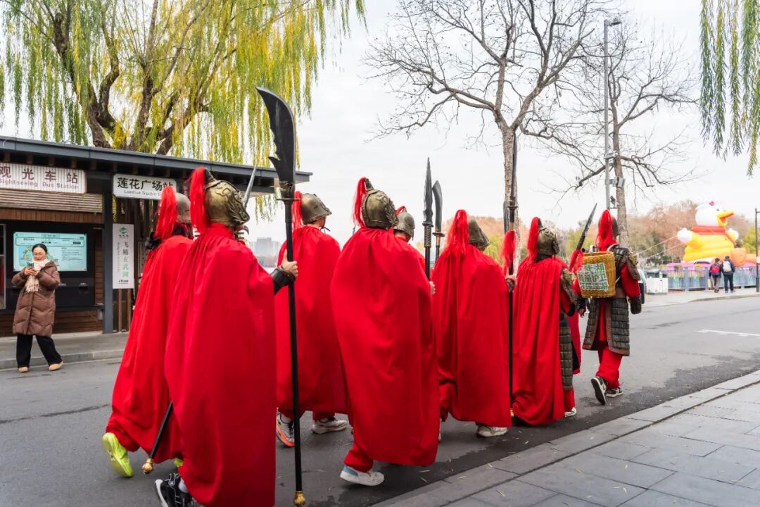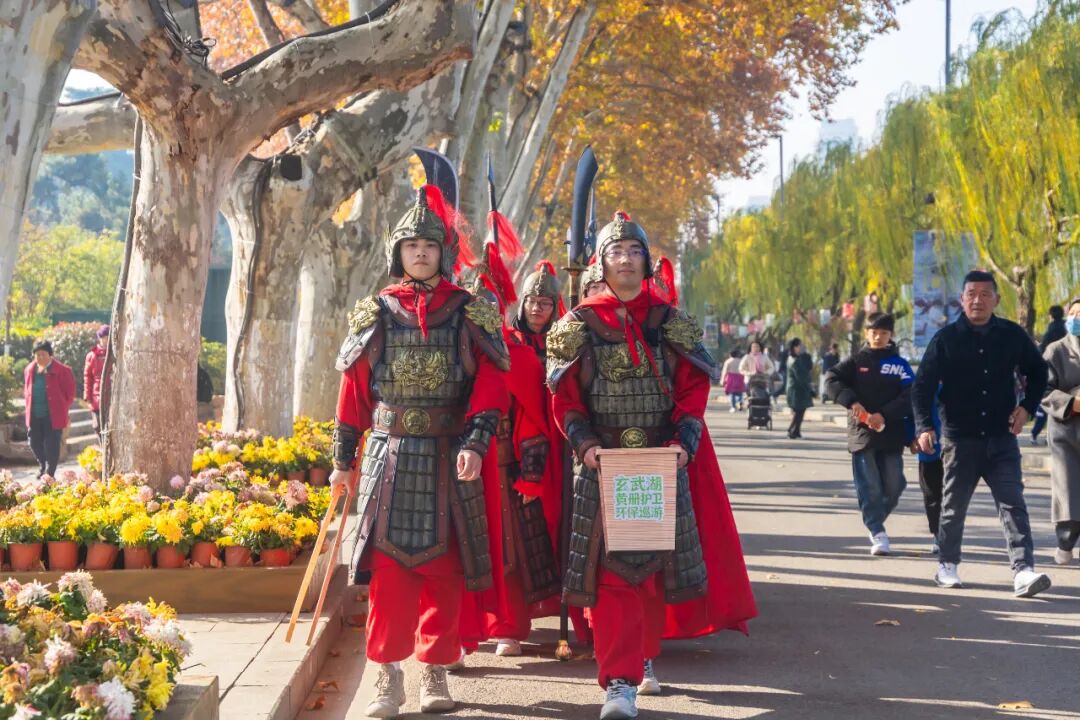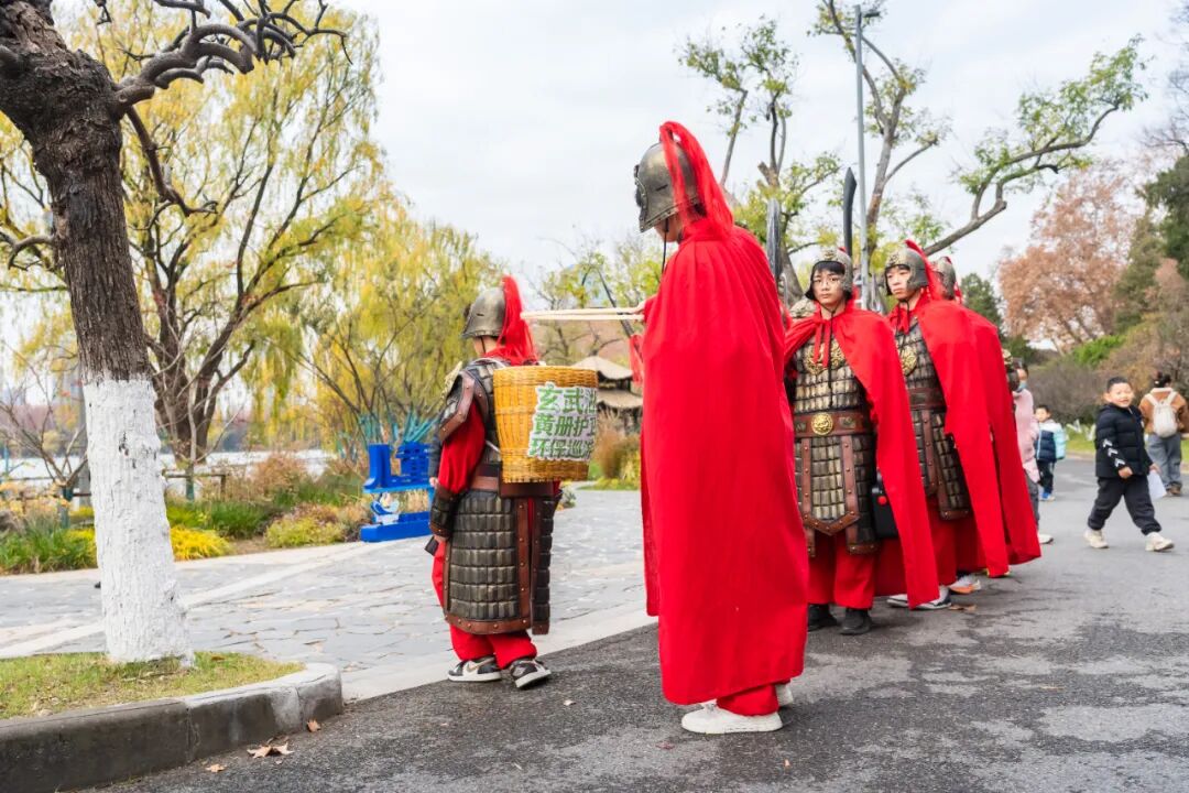 作为明代国家档案馆后湖黄册库的所在地,玄武湖的黄册库护卫巡游一直是热门的沉浸式活动。如今这群“明代护卫”解锁了新身份——黄册护卫的“卫”,也是环卫的“卫”!巡游途中,志愿者身着明代铠甲,手持清洁工具拾捡杂物,用趣味方式延续明文化主题,更传递文明游园理念。