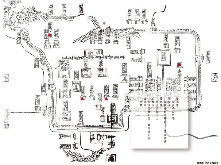 《洪武京城图志》记载了都城五个仓库司局,黄册库排名在銮架库、军储仓之后,火药局、宝源局之前。