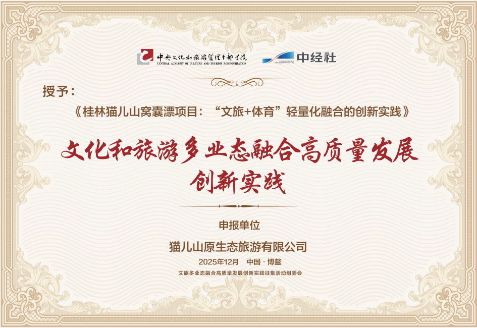 近日,由新华社品牌工作办公室、新华网主办的2025企业家博鳌论坛在海南举办。论坛发布了“文化和旅游多业态融合高质量发展典型案例”,广旅桂林投资公司《桂林猫儿山窝囊漂项目:“文旅+体育”轻量化融合的创新实践》成功入选全国示范案例。