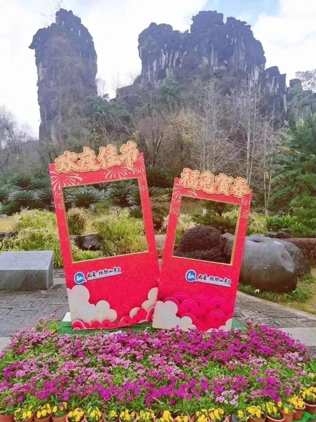 “兔”个好运--三姐对歌迎新春,祝福绣球送不停。美丽的刘三姐唱着动听的山歌款款而来,把一年中最美好的祝福送给四方的游客,祝愿他们平安喜乐,好运连连。