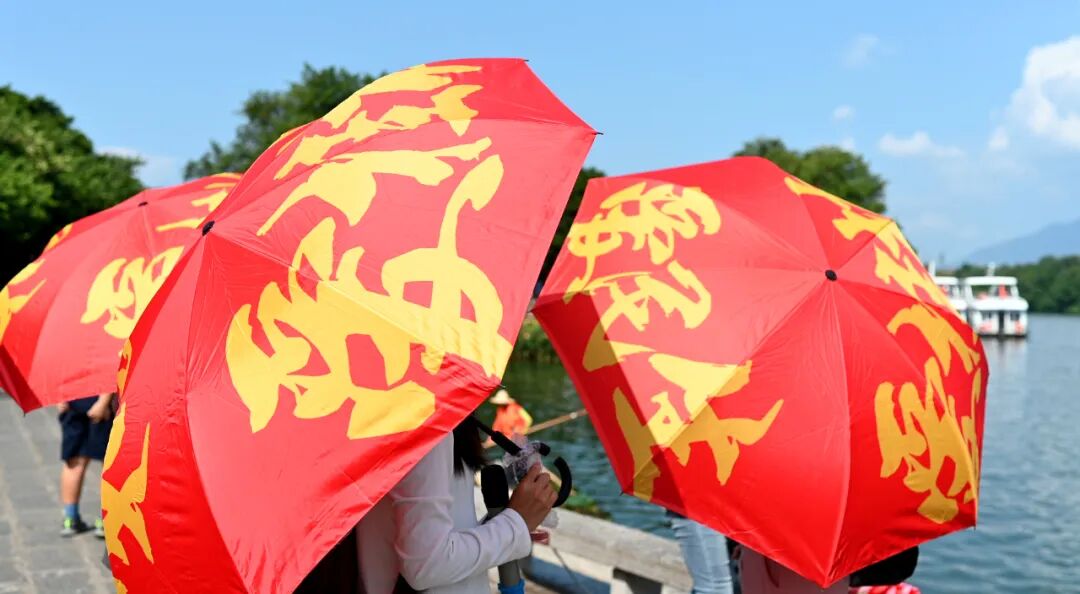”的爱心伞、小国旗以及题字“盛世华诞”“光耀神州”的千里江山图团扇,来自广东台山的游客黄先生说: