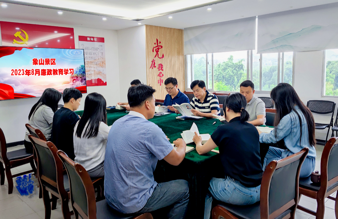 景区积极打造清廉文化展示区,寓廉于景,润物无声。积极开展线上廉政微党课学习,并在全体员工中开展清廉标语征集活动,优选出原创标语放置于景区园林小品中。挖掘廉政文化内涵,融入导游词,推进清廉文化与文化旅游深度融合。购置廉政书籍,党建公众号推送廉政教育宣传,积极传播廉洁理念。