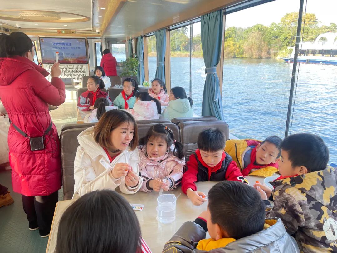 游船缓缓驶入江心,望着窗外旖旎的漓江风光,孩子们再也按捺不住内心的雀跃,纷纷走上甲板。冷冽的寒风也抵挡不住孩子们似火的热情,他们认真聆听着研学导师讲述着漓江的过去、现在与未来,领略着家乡母亲河的无穷魅力。