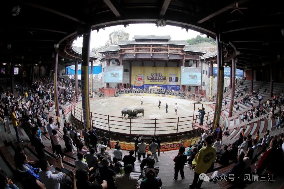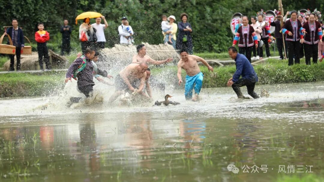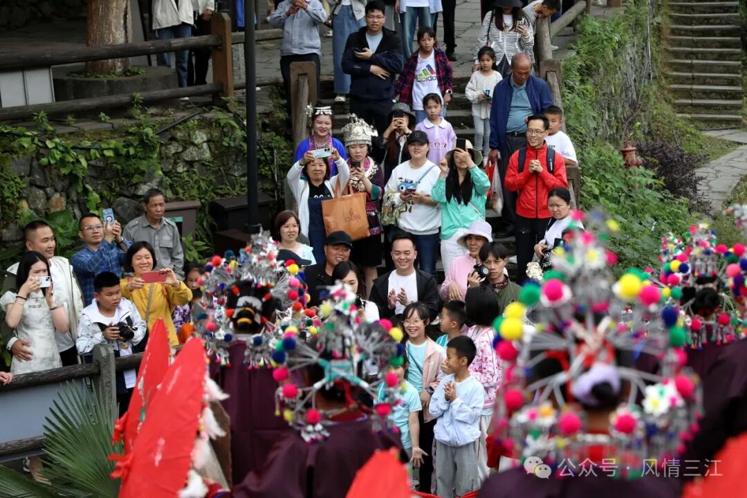 5月1日,三江侗族自治县程阳八寨景区举行丰富多彩的风雨桥头拦路迎宾、开耕·敬牛节、民族风情展演、抓鱼抓鸭子比赛等多彩民俗活动,吸引八方游客前往观赏体验,乐享“五一”假日时光。