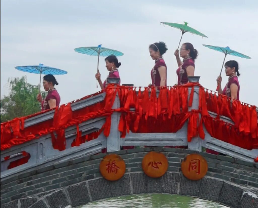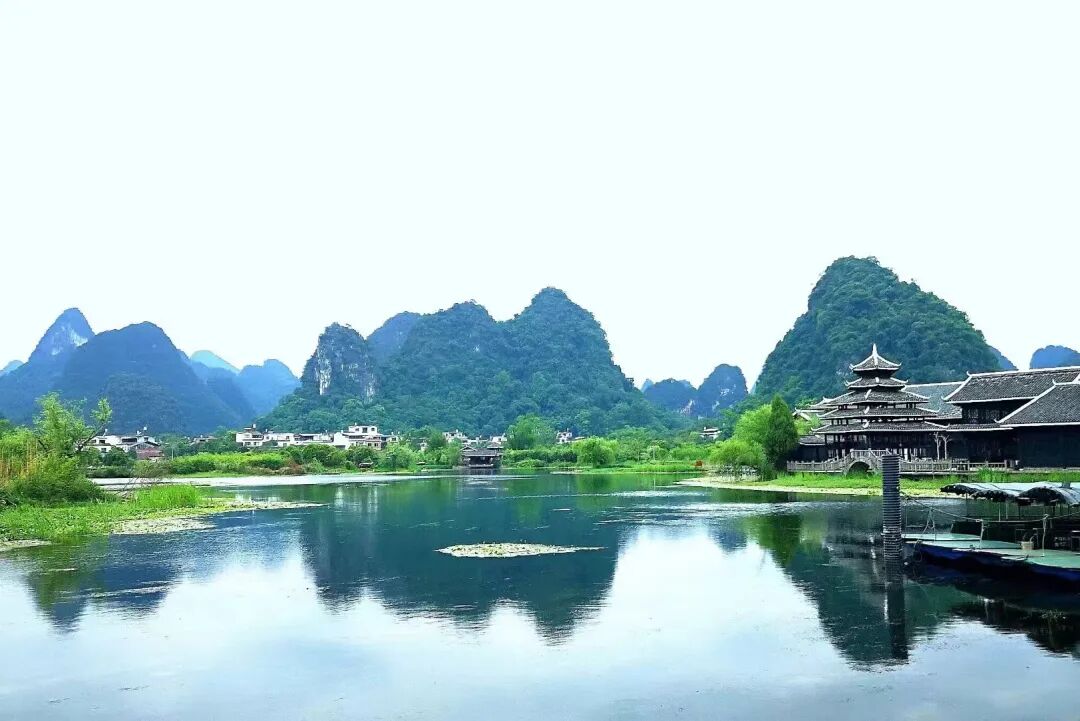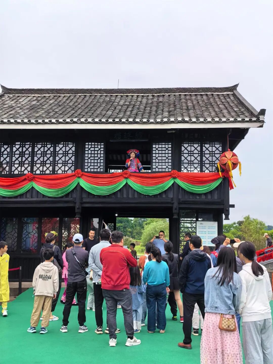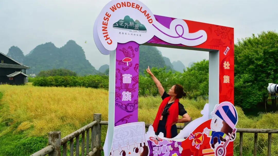 世外桃源景区处处热闹非凡,游客在风雨桥、同心桥、渊明山庄、鼓楼处等区域间穿梭,
