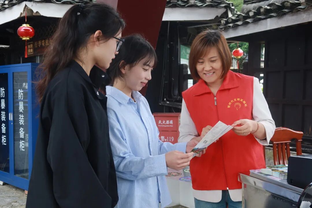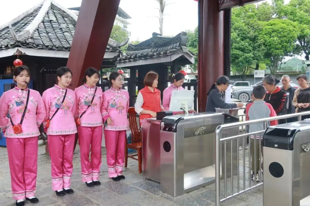 工作人员除了组织游客凭票安全有序进入景区外,还主动帮助游客朋友们完成检票入园手续;