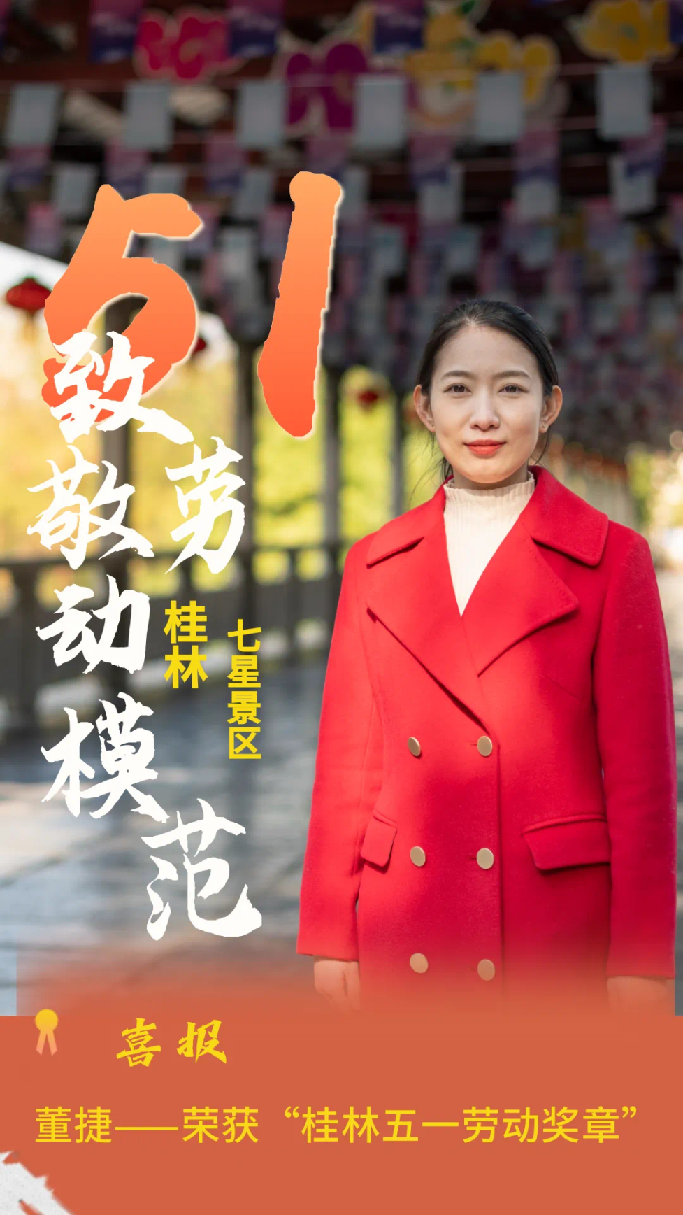 作为桂林打造世界级旅游城市建设“排头兵”,桂林旅游投资集团始终牢记国企使命担当,以打造高标准、高素质、高效率的服务团队要求自身,旗下不断涌现出在平凡岗位中创造了非凡业绩的先进个人。此次,七星景区的导游班讲解员——董捷荣获桂林市总工会授予的桂林五一劳动奖章。