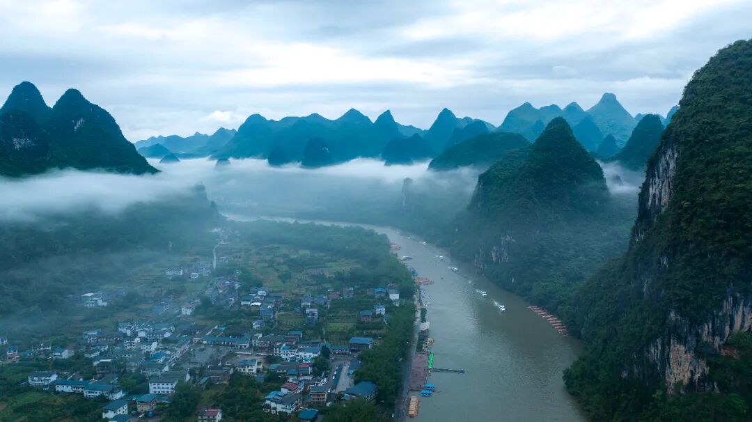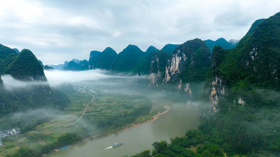 ▲漓江上空云雾缭绕