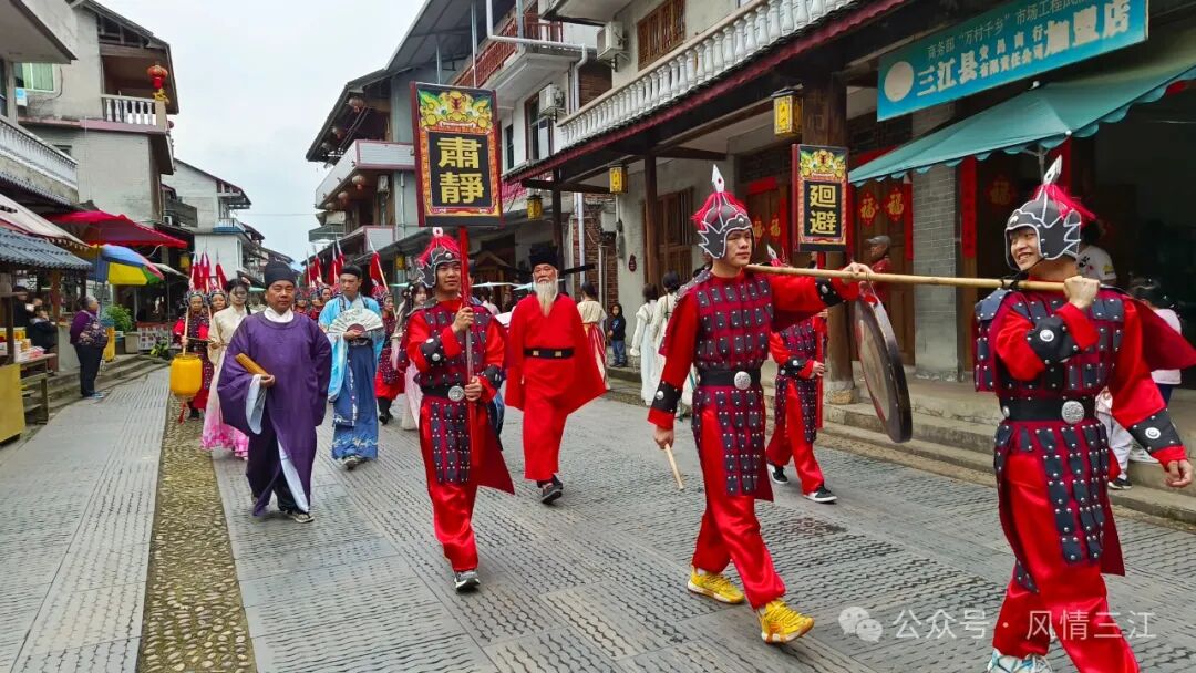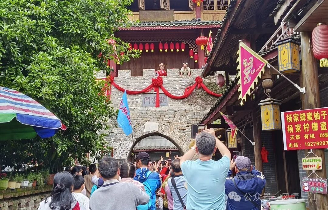 5月4日,三江侗族自治县丹洲景区举行码头迎宾、县令巡城、东门招亲、《丹洲·古韵》演艺等丰富多彩的活动,尽展古城文化魅力,吸引大批游客前往游玩体验,欢度“五一”假期。