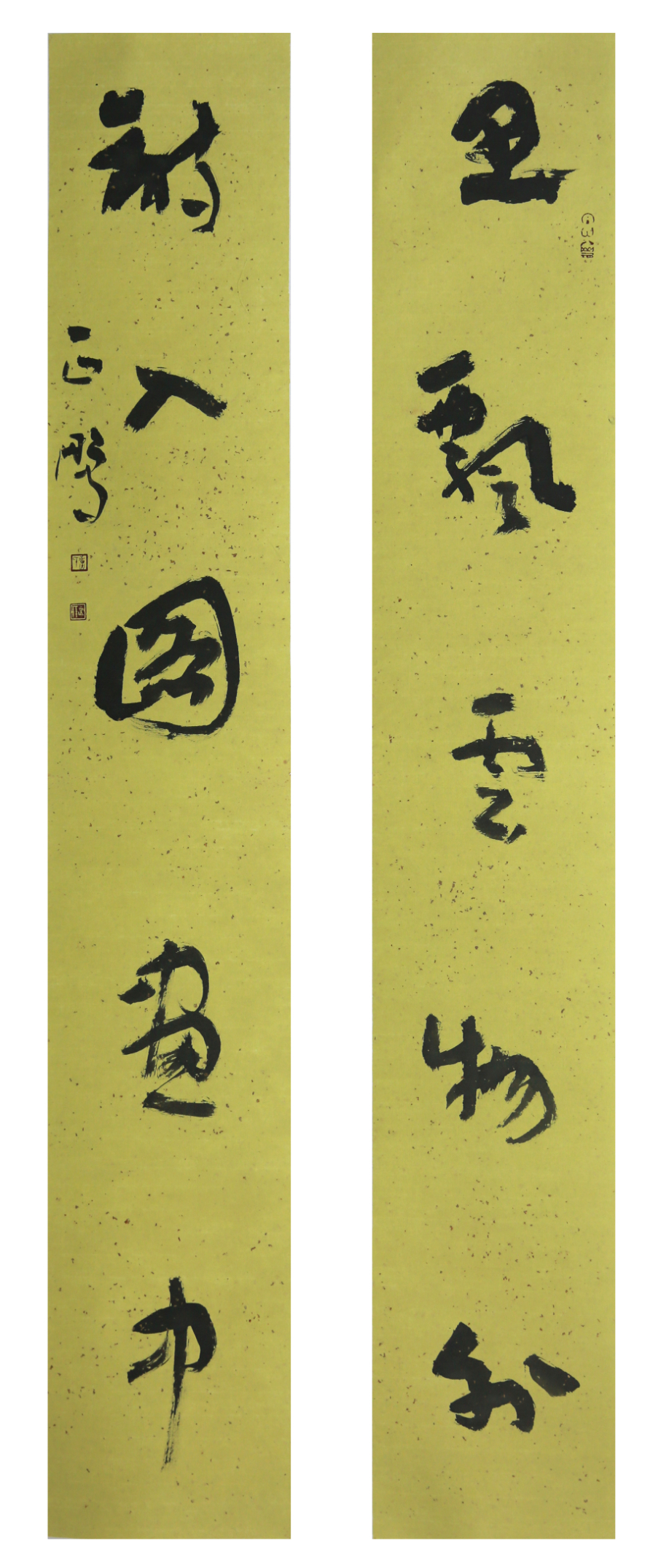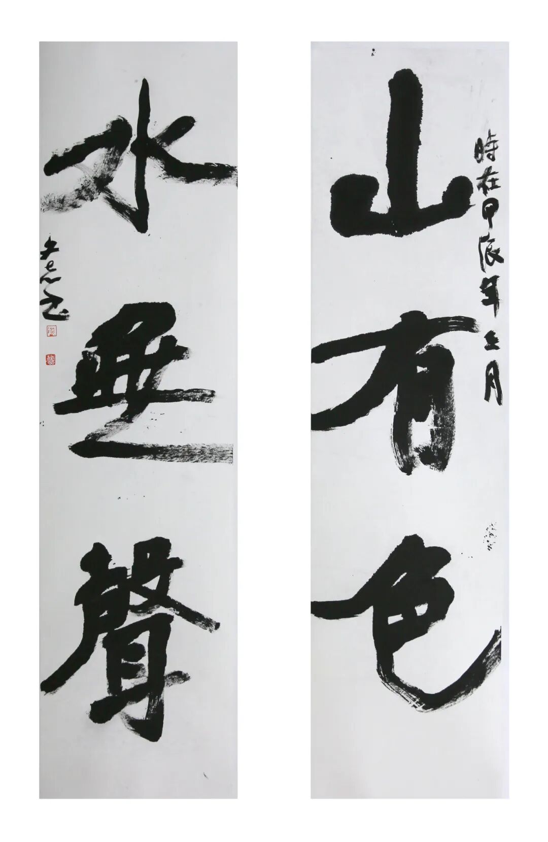 《山有色 水无声》潘文志 138cm×35cm×2 楷书