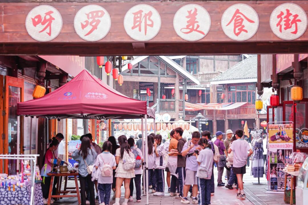 穿过程阳八寨南服务区的农文旅超市,走下同心桥,师生们就能到达景区呀啰耶美食街,品尝侗族特色美食,酸鱼酸肉酸鸭配上一碗热气腾腾的油茶,幸福感满满!