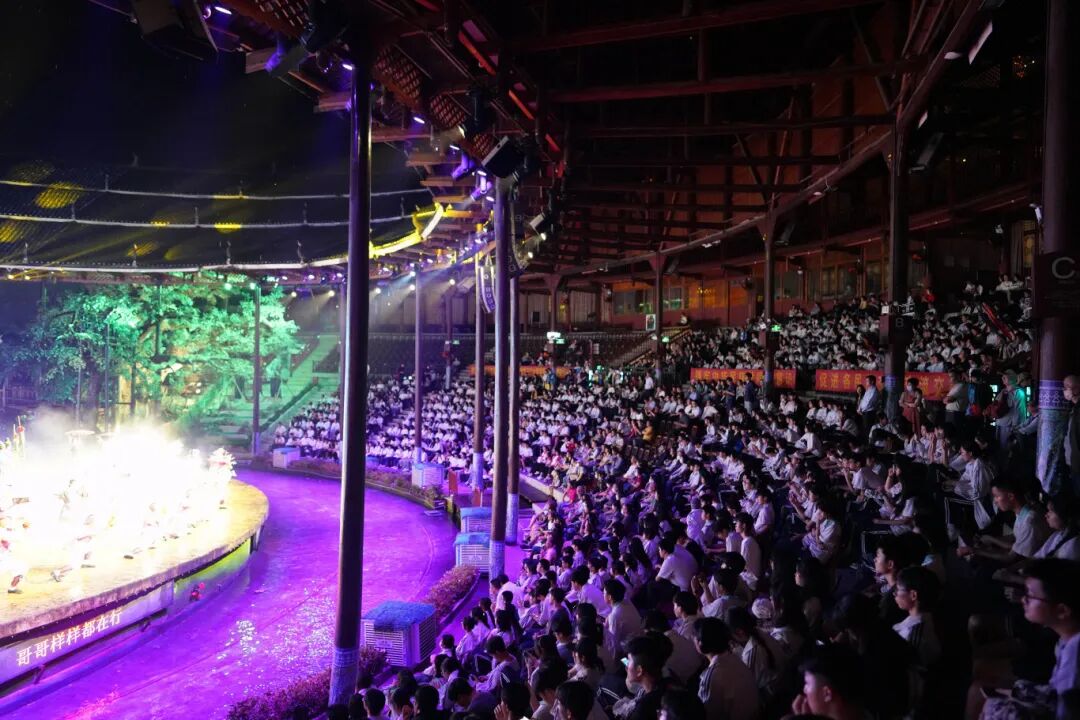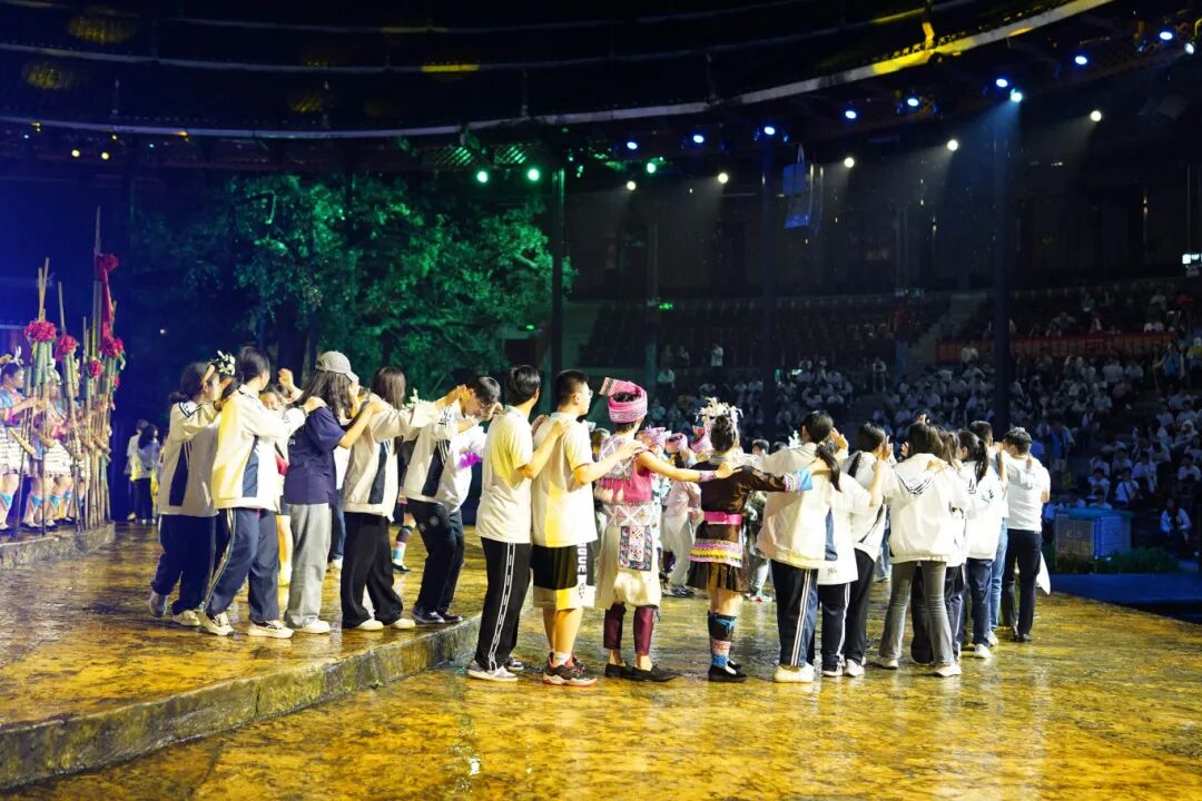 在这里,研学团队可以欣赏到全国演艺精品四十强《坐妹三江》大型实景演出,在行歌坐妹里感受侗族的婚恋浪漫,现场的舞台艺术和音乐效果让师生们仿佛身临其境,直至演出结束都意犹未尽。