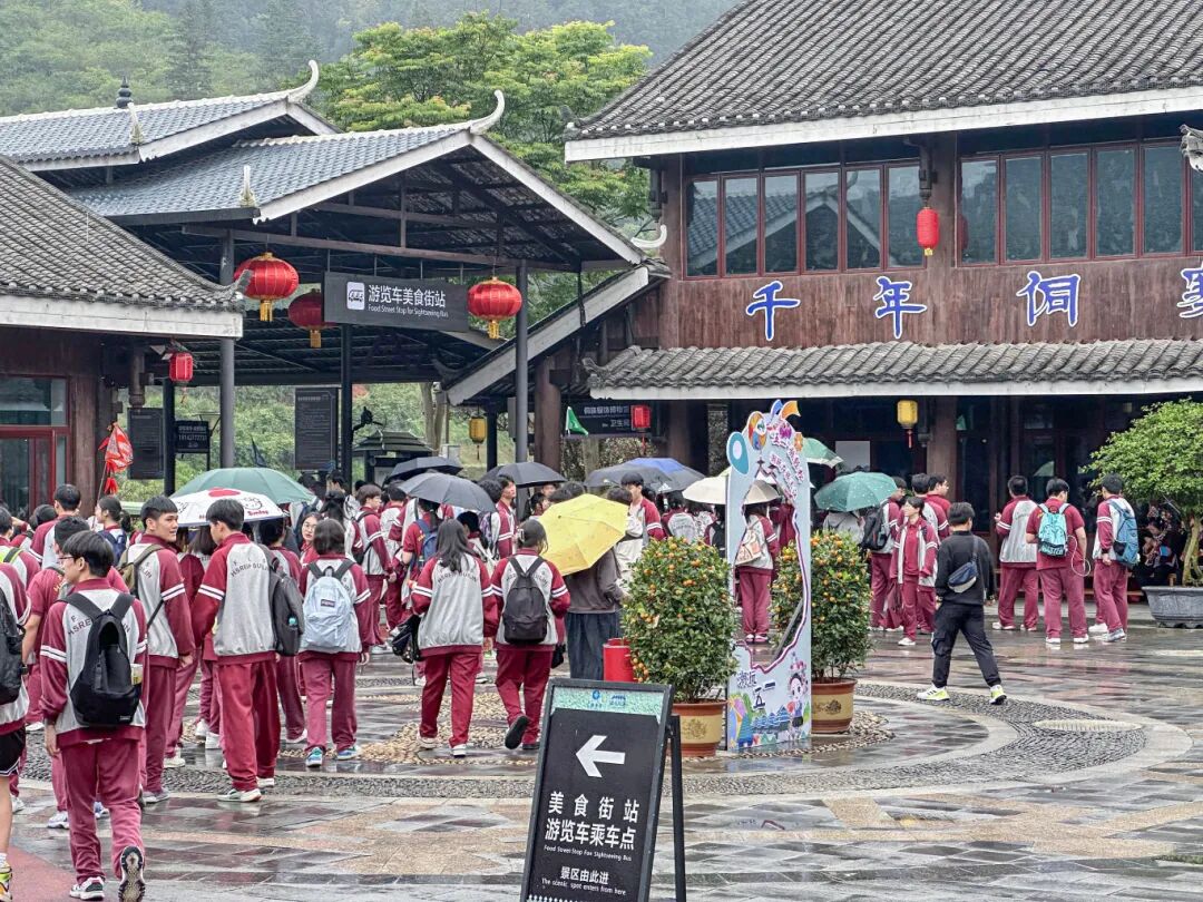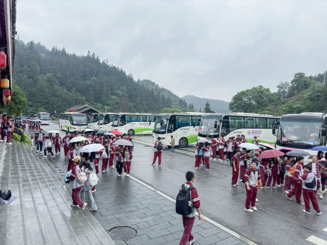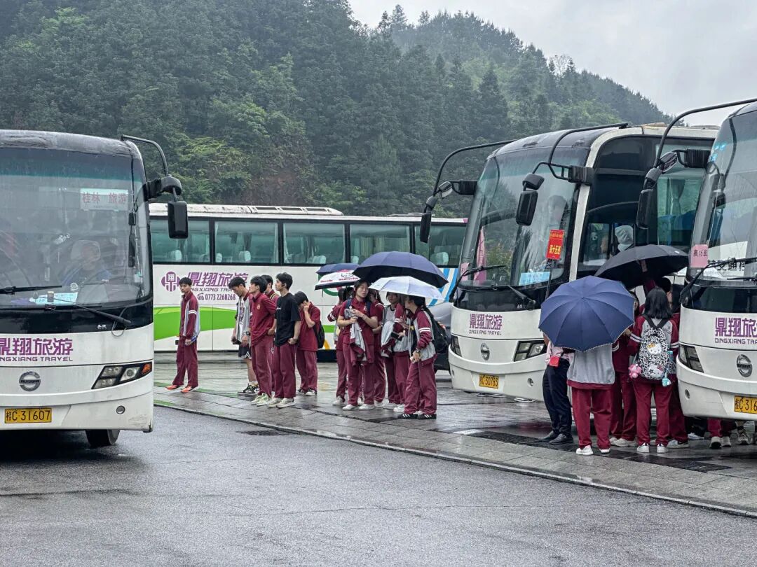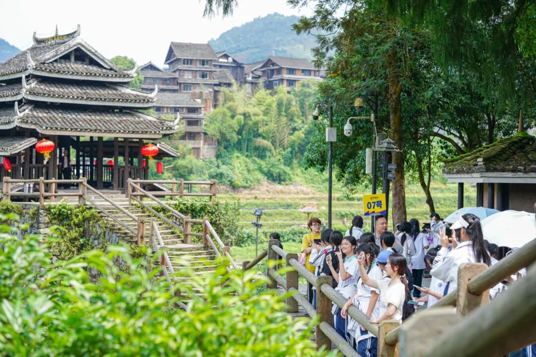 烟雨蒙蒙,来自柳州和桂林的中学师生们抵达程阳八寨景区,即将开启他们的探秘程阳研学之旅。