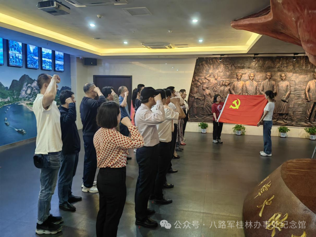 活动的第二阶段,党员同志们来到八路军桂林办事处纪念馆开展现场教学并重温入党誓词,传承红色基因,赓续红色血脉。活动结束后,党员同志们纷纷表示要坚持理论联系实际,党建与业务双融双促,使学习成果成为促进工作的强大动力,坚决以实际行动践行初心,扛起使命,推动新时代“清廉八办”建设提质增效。