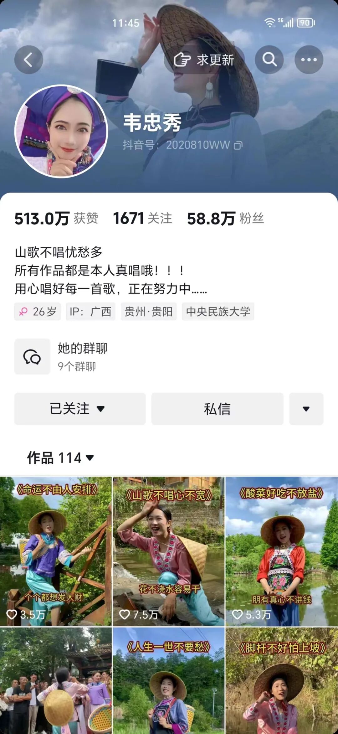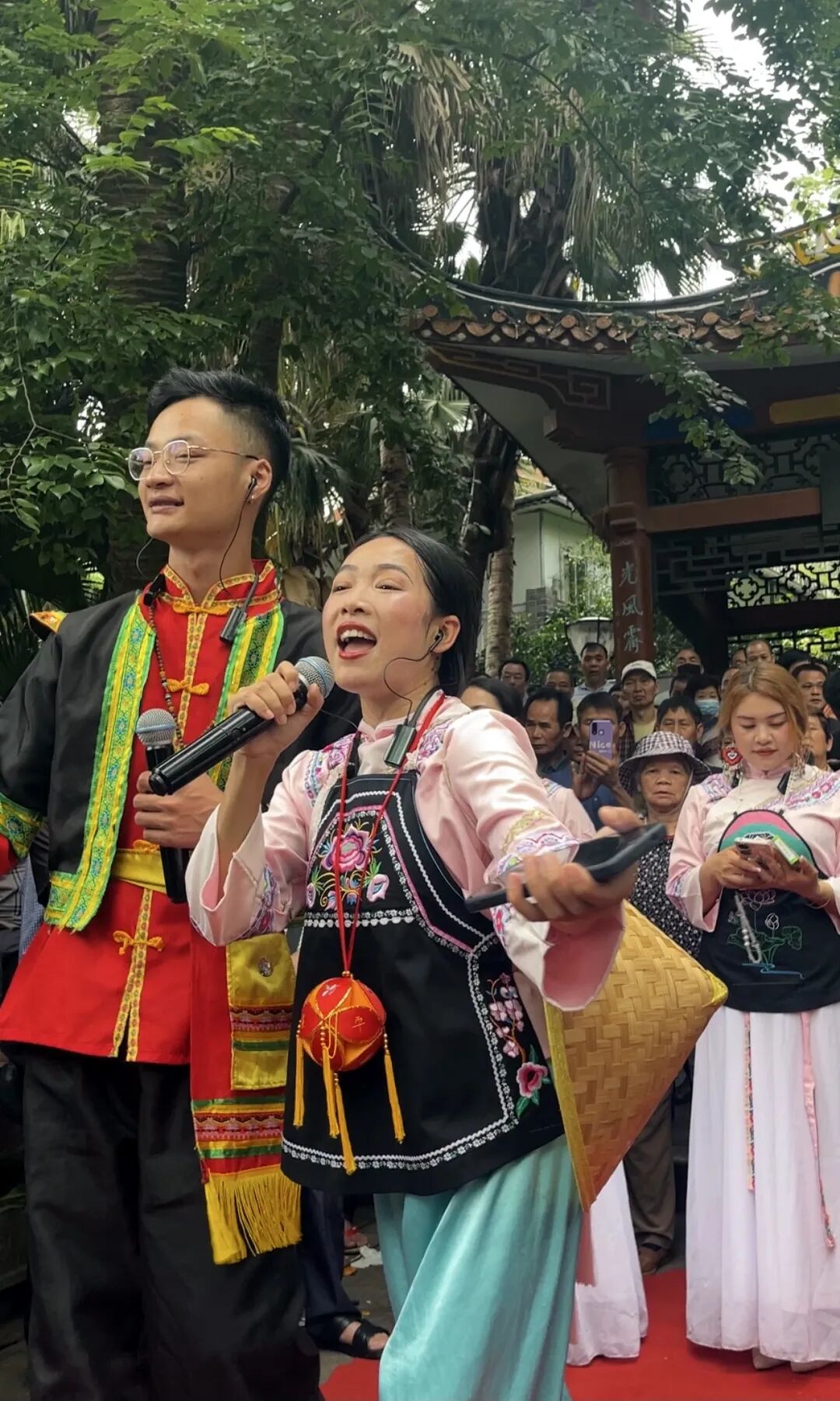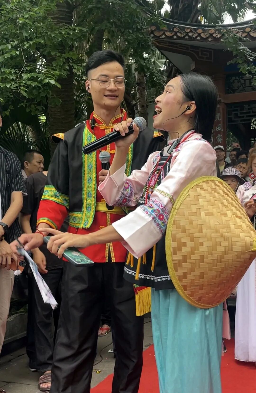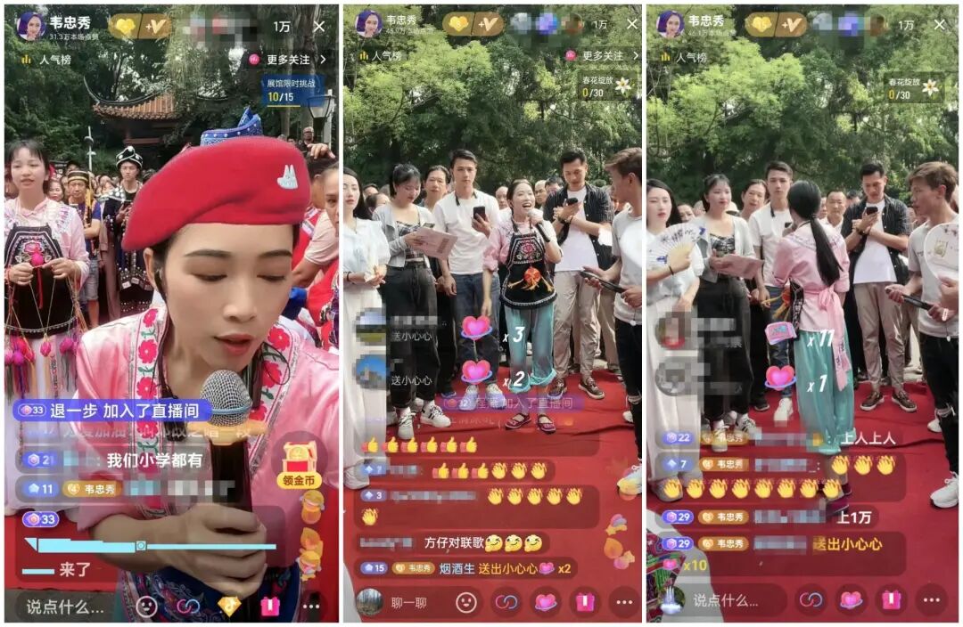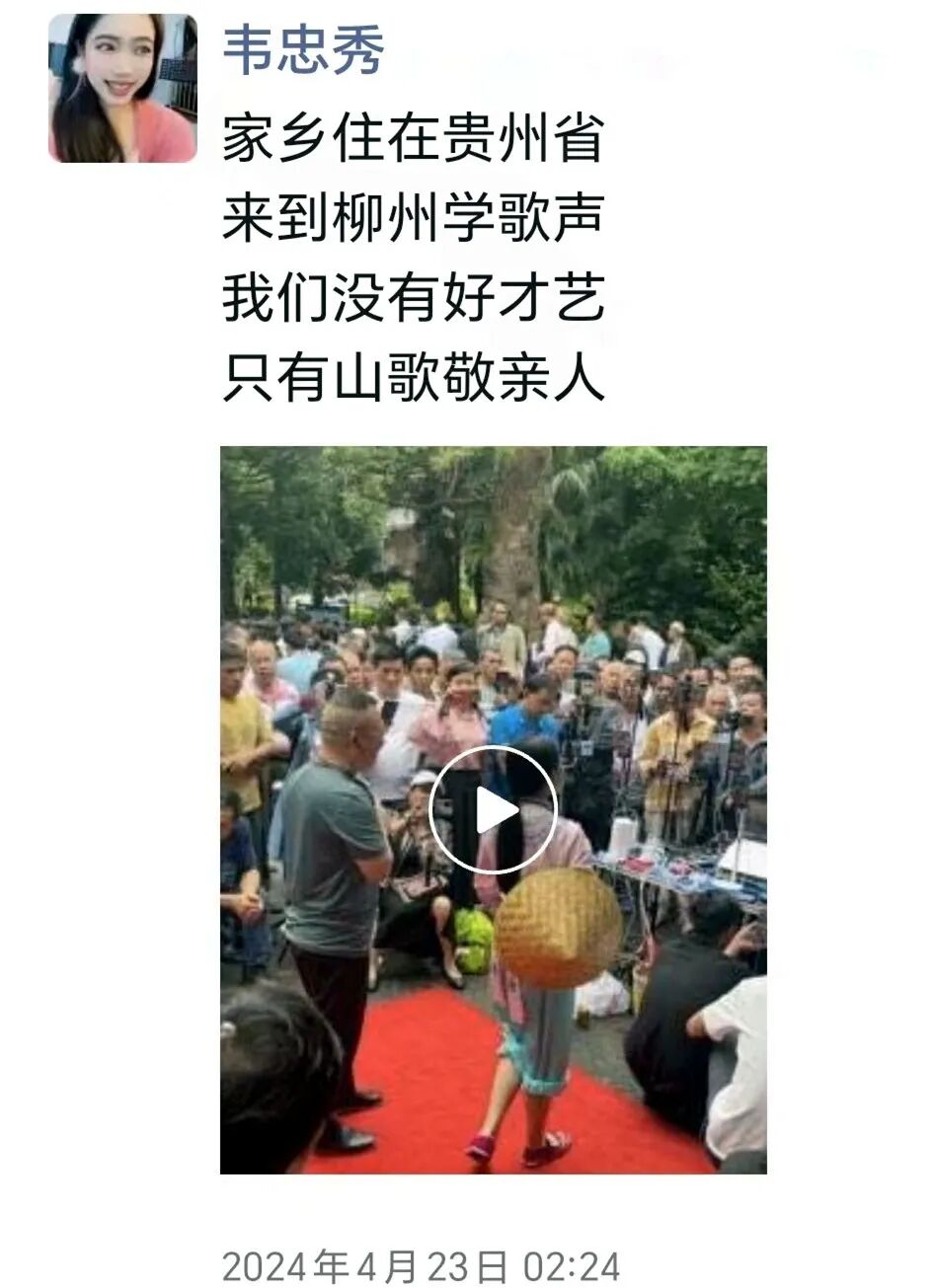 截图自:韦忠秀在柳州“鱼峰歌圩”唱山歌的抖音直播