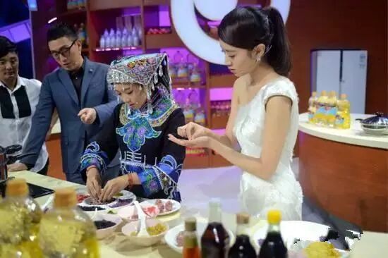 韦忠秀(右)和央视美食节目《中国味道·寻找传家菜》