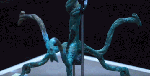 同时,别看人面鸟身神像是“附件”,但三星堆铸工匠人的职业素养是不放过任何一个细节。鸟的尾翼及人面冠上的小部件也都要分别单独铸造再组装,至少经历4到5次浇铸过程,看似寻常却寸寸匠心。