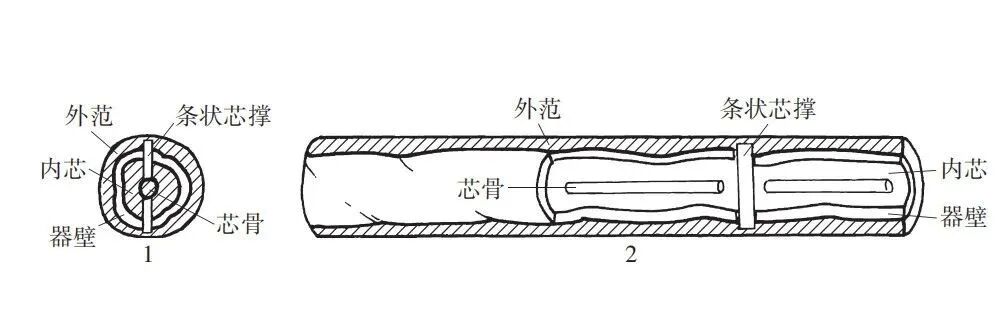 树干采用分段铸造后进行铸接,并且运用条形芯撑和芯骨技术。芯骨是在制作泥芯时在中间加入有机质或金属质条状物,起到加固和支撑泥芯的作用,类似于现代建筑中的“钢筋”。 条形芯撑则是横向贯穿包括器表、器壁和泥质内芯的整个器物,其作用与其他芯撑一样起到固定内芯位置的作用。