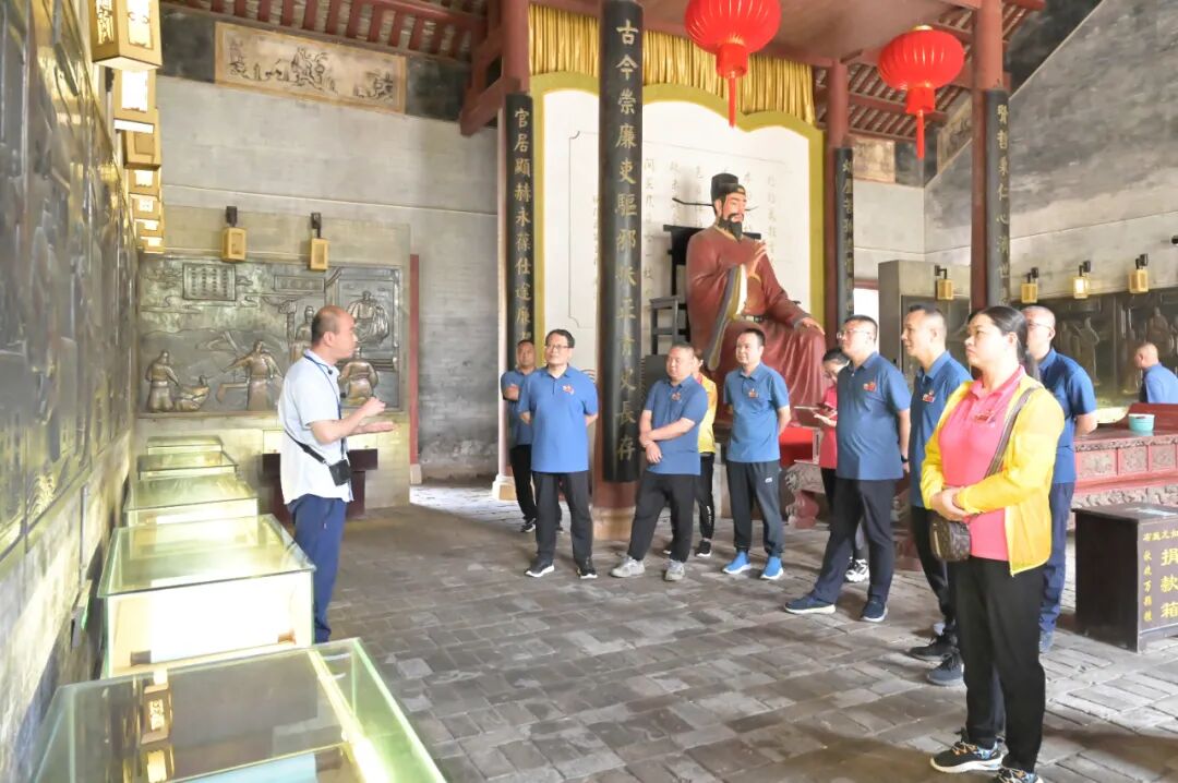 踏入周渭祠,那庄重古朴的氛围便扑面而来。党员们怀着崇敬的心情,仔细参观着祠内的每一处景致和展示。周渭祠作为廉政文化的重要载体,充分展现了周渭一生清正廉洁、刚正不阿的品质。