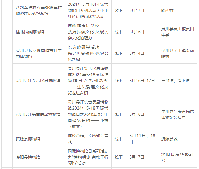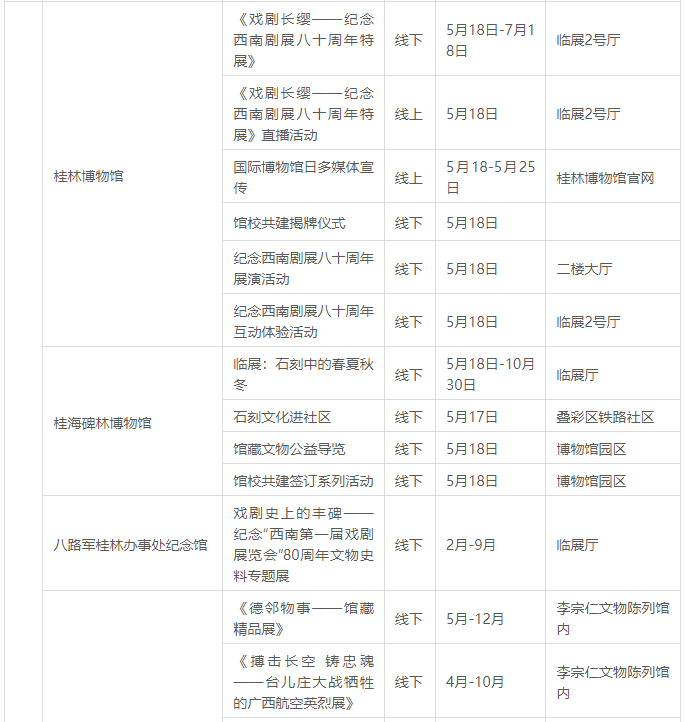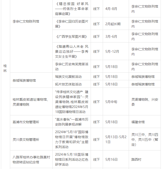 桂林2024年度“5.18国际博物馆日”活动安排表