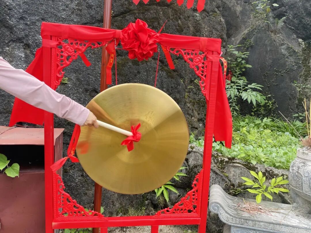 你可以敲响铜锣,祈愿:一响,一举成名;二响,学业有成;三响,金榜题名!