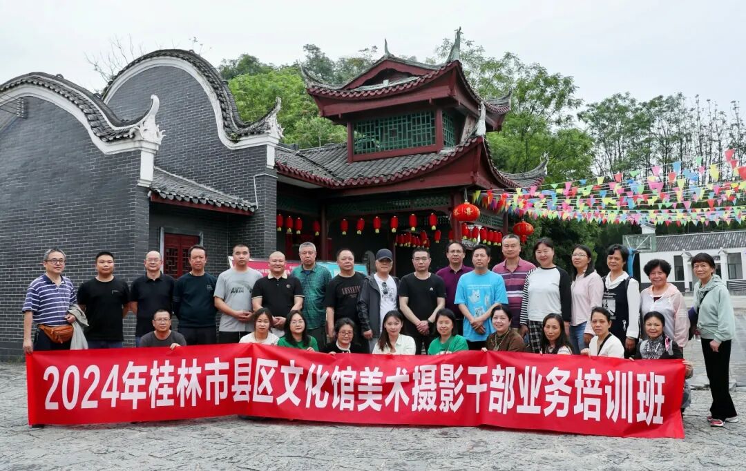为进一步提高全市文化馆(站)美术和摄影业务干部开展免费开放培训的业务技能和业务水平,提升我市美术、摄影免开培训质量,助推我市文旅融合向纵深推进,同时为第十六届广西“魅力北部湾”系列群众文化活动美术书法摄影作品展收集素材,桂林市群众艺术馆于2024年5月6日至11日成功举办了2024年全市文化馆(站)美术摄影业务干部写生摄影免费开放培训班,28名培训人员在我馆黄宏辉副馆长的带领下,赴贺州市富川县朝东镇秀水村一带开展培训活动。