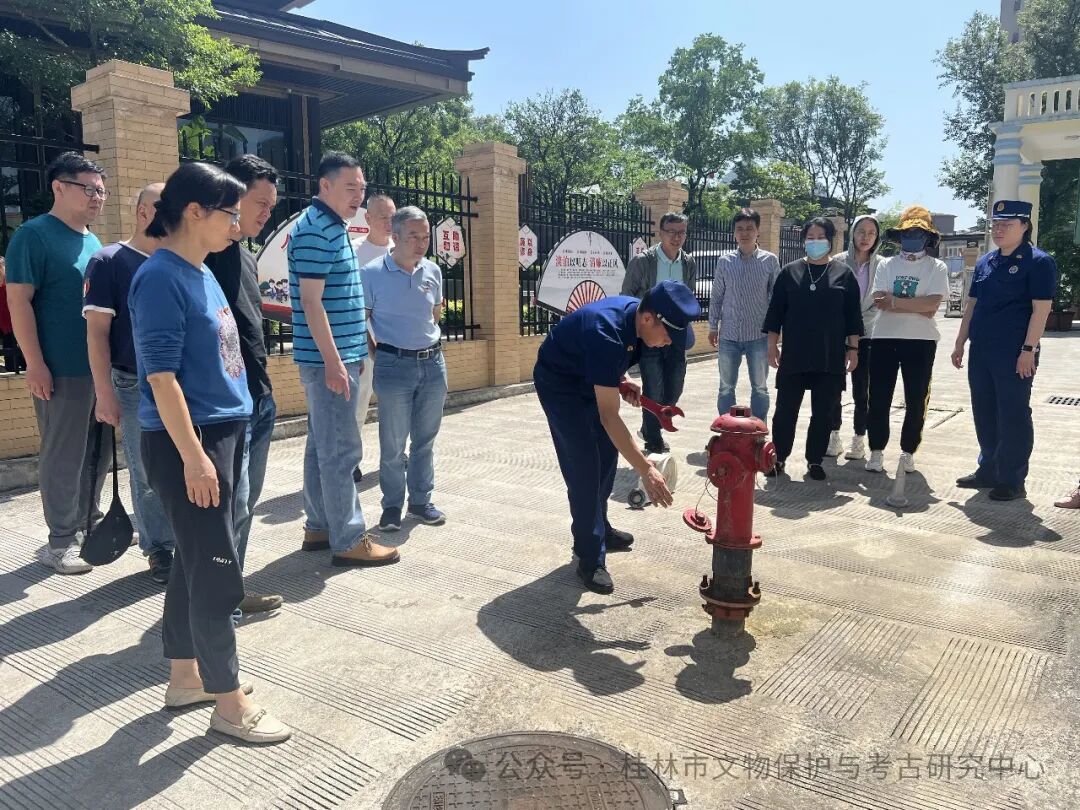 桂林市秀峰区消防救援大队专业人员给市文保中心工作人员、值班人员演示消防栓使用方法 为进一步加强文物安全工作,夯实文物安全责任,2024年5月14日上午,桂林市文物保护与考古研究中心在广西人民革命大学旧址(广西壮族自治区文物保护单位)组织开展“守护文物安全”消防安全演练。市文保中心工作人员、值班人员等20余人参加培训和演练。