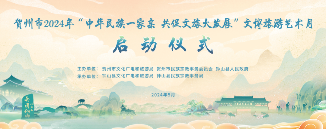 由贺州市文化广电和旅游局、贺州市民族宗教事务委员会、钟山县人民政府主办、钟山县文化广电和旅游局、钟山县民族宗教事务局承办的贺州市2024年“中华民族一家亲 共促文旅大发展”文博旅游艺术月启动仪式将于5月17日19:30在钟山县市民广场盛大举行。此次活动现场开展多项主题活动,具体活动详情快往下看。