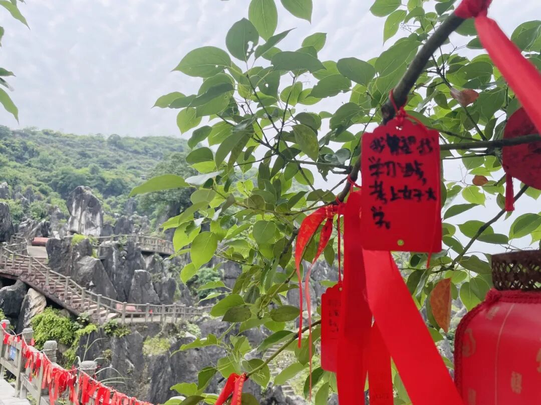 为助力广大中考生和高考生们取得好成绩,玉石林景区举办"考试季祈福游"系列专属活动,大家可以敲铜锣、写祝语,祈愿旗开得胜,金榜题名!