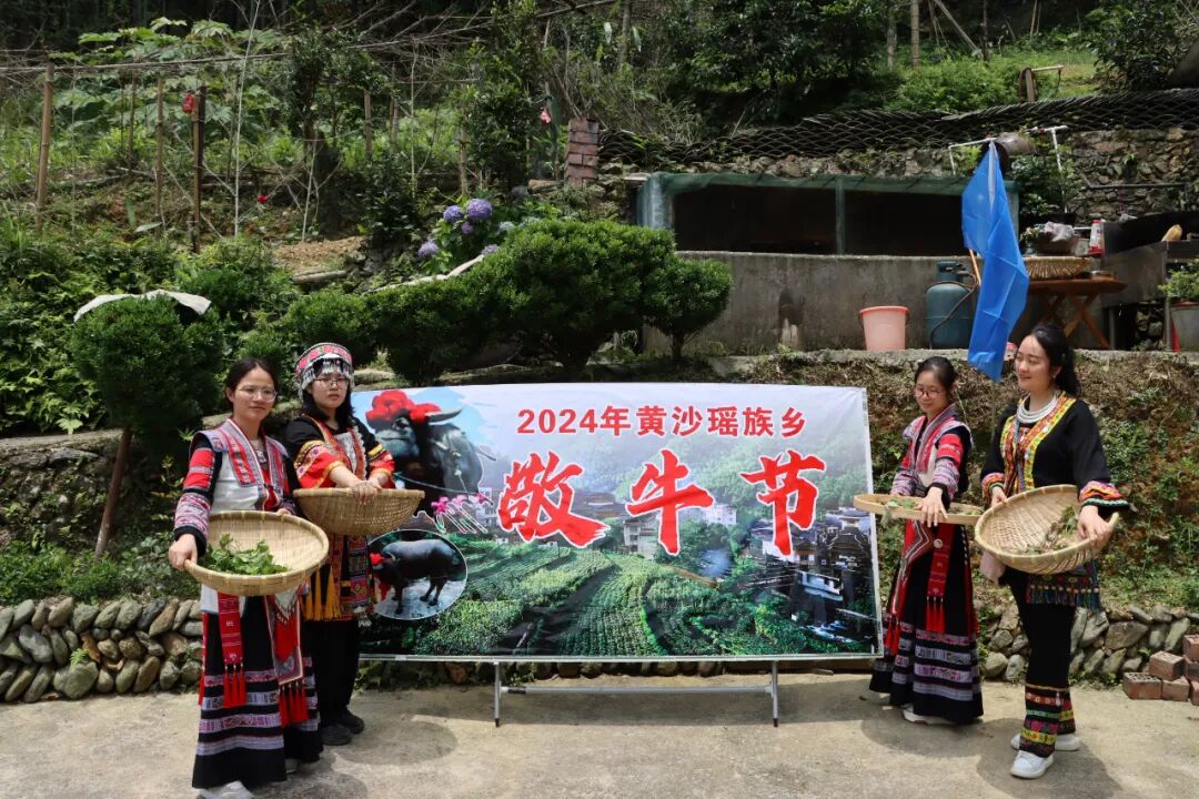 “四月初八传统节,清河牛神生日到,欢歌燕舞庆丰年......”5月15日(农历四月初八),黄沙瑶族乡陈家村举行了一年一度的“四月八”敬牛节,丰富多彩的民俗活动吸引了众多游客前来游玩体验。活动当天,全乡瑶族群众身着节日盛装,欢聚一堂,开展敬牛仪式、舞狮、采摘野菜、特色瑶族宴等丰富多彩的民俗活动,以独特的方式表达对牛的爱护和崇敬,祈祷风调雨顺、五谷丰登。