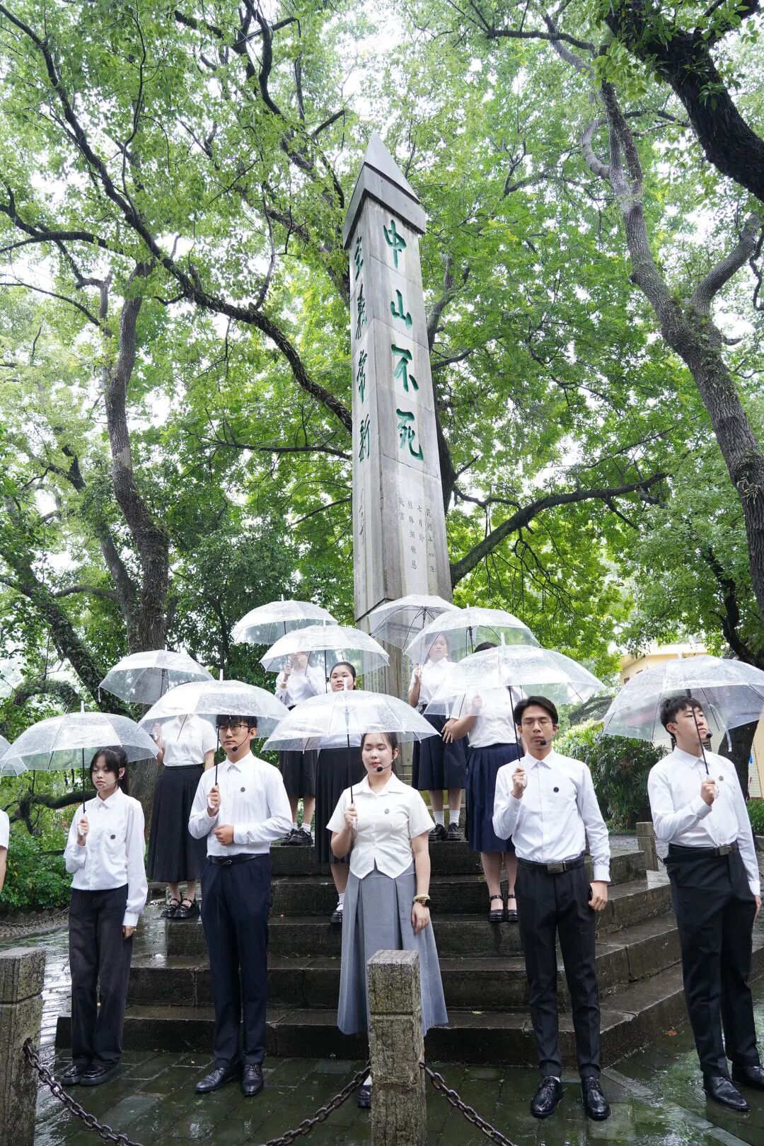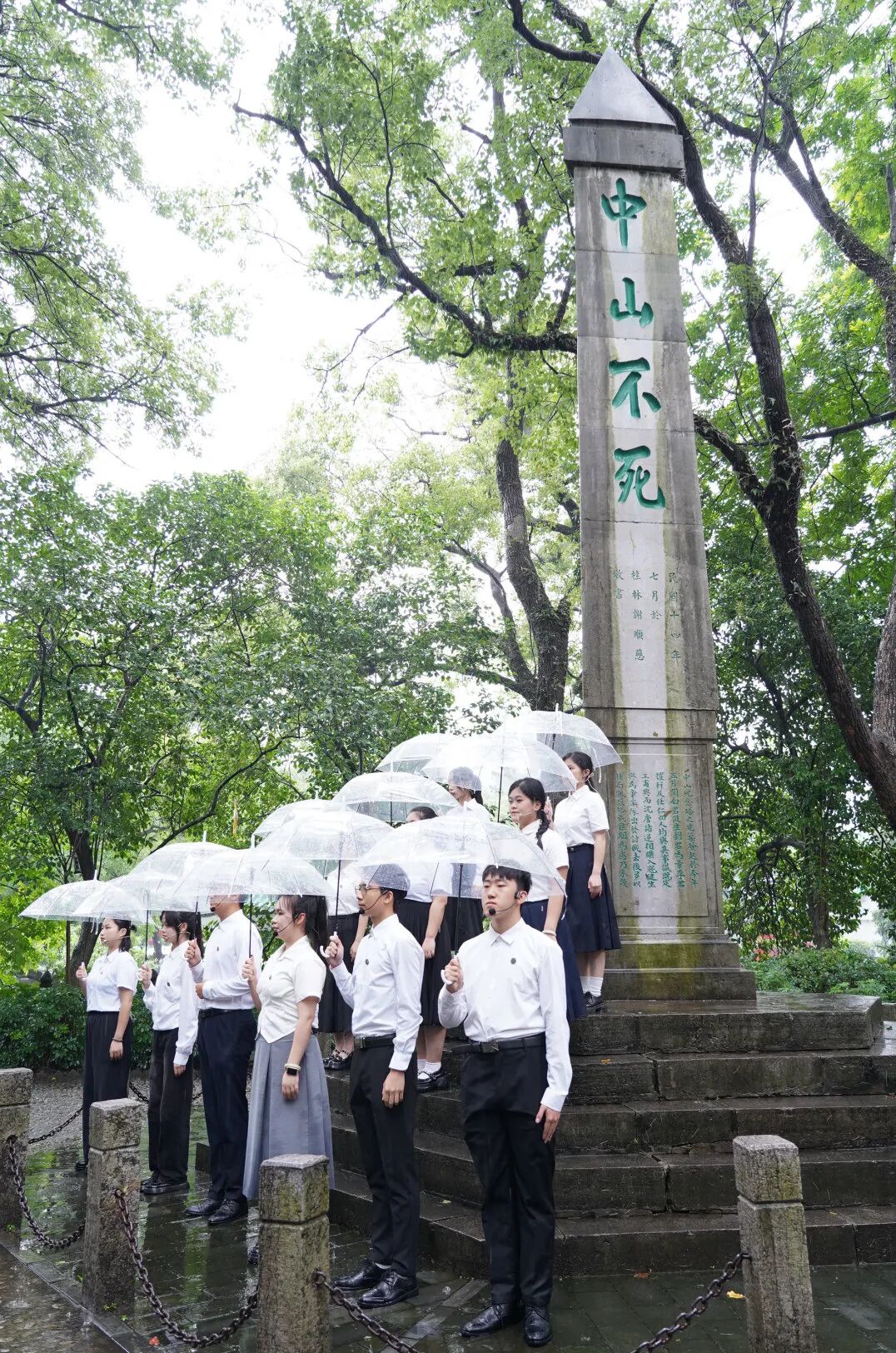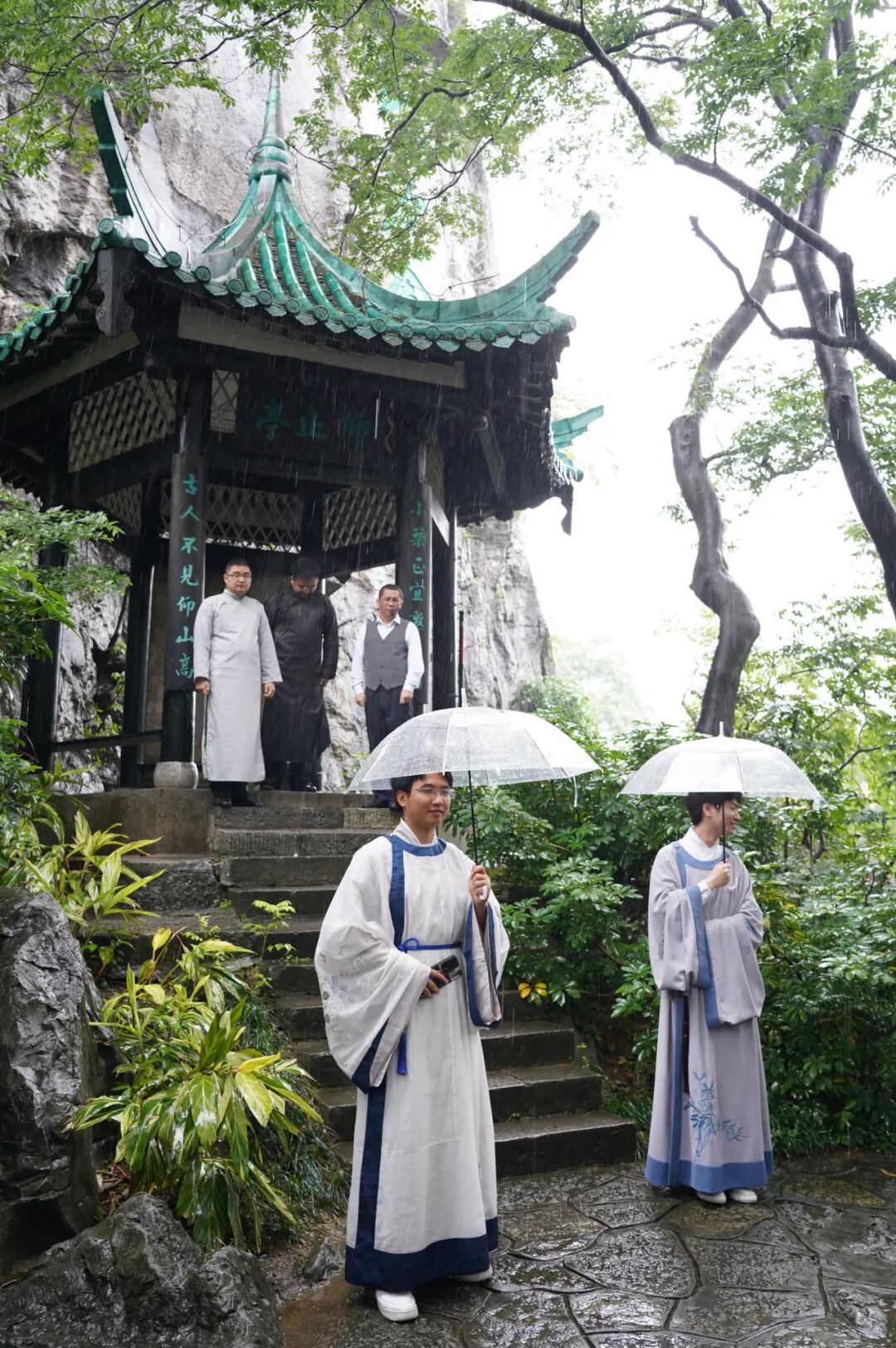 仰止亭下的演绎让现场观众感受到,历史仿佛重现,大家仿佛能听到那激昂的抗战歌声,看到那坚韧不拔的抗战精神。雨势渐大,但观众们的掌声久久没有停下。