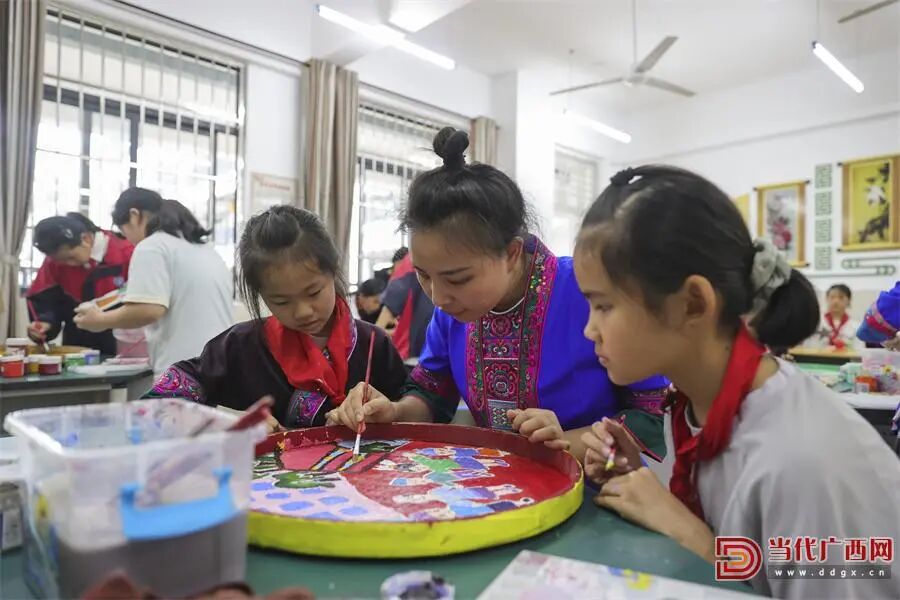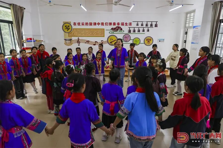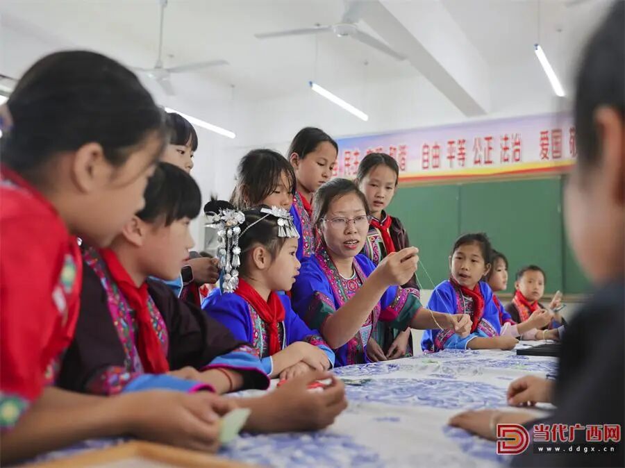 在柳州市三江侗族自治县古宜镇江川小学的校园里,一幅幅温馨而动人的画面正在上演。一群心系家乡的老师们,她们学成归来,带着对侗族文化的深厚感情,为江川小学的孩子们打开了一扇通往家乡非遗文化的大门。