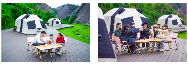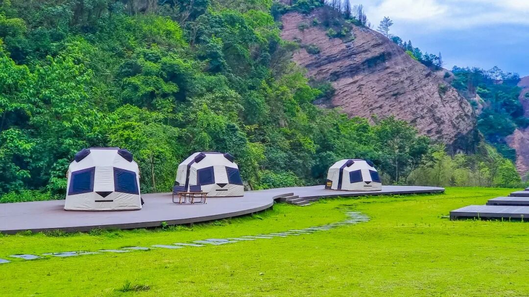 青崖赤壁环抱的一方自然涧谷秘境,保留丹霞地貌最原始的壮观景色与自然野趣,同时可开展烧烤、帐篷露营、崖壁电影、灯光秀等户外露营体验活动。