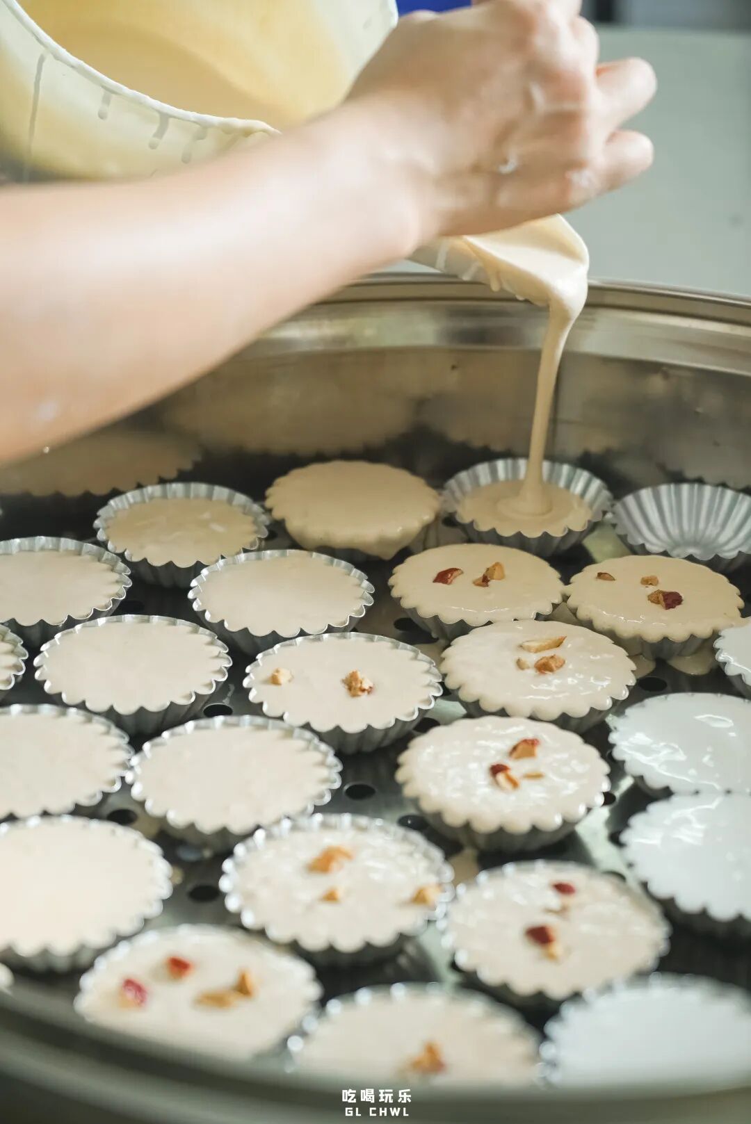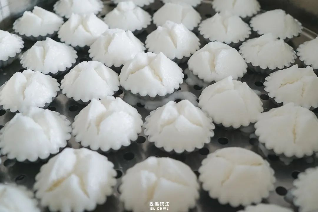 简简单单的米糕,看上去平凡无奇,但背后却也需要花费不少力气。磨到细腻的米浆,经过缓慢的发酵,保留着原原本本的米香。