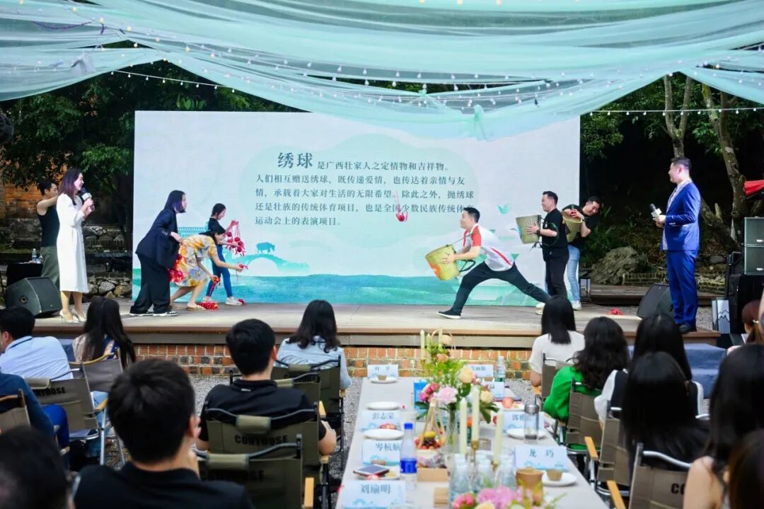 晚上,大湾区的青年嘉宾们在荷塘老寨度过了一个浪漫的“520”,体验了撞蛋、植物拓印、扎染、抛绣球、围炉煮茶等民俗体验活动,欣赏了钟山特色非遗表演,观看了绚丽多彩的烟花秀,在凉爽的夜晚体验了星空露营晚餐。在本次主题活动的交流分享会上,大湾区青年代表连连称赞贺州人民热情、风景秀丽、文化浓厚。