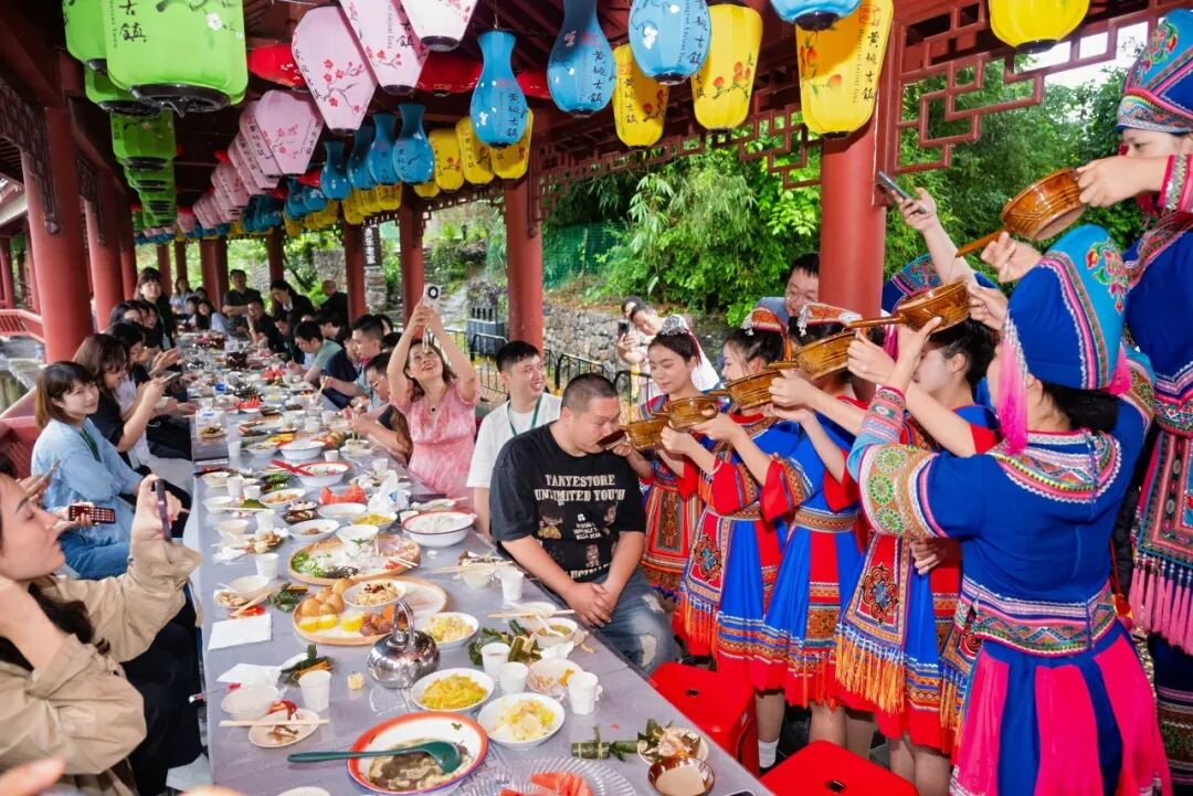 第一天,大湾区青年们在黄姚古镇参观农趣园、体验长桌宴、观看非遗表演、体验高山流水,感受贺州人民的热情好客。晚饭后,青年们走进夜色下的黄姚,伴着串串灯笼,走在悠悠古巷,感受宁静闲适的古镇风韵。