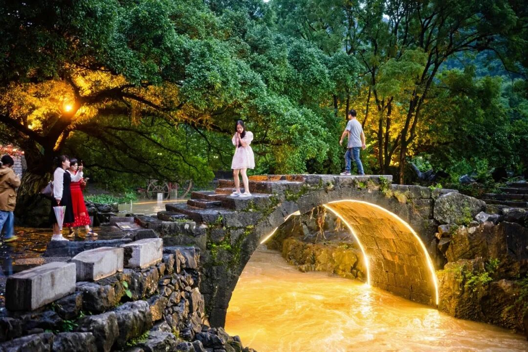 下午,青年们来到“山水相依的画廊 风华绝对的丹青”水墨田园景区,看五指山、“天猫”logo,赏万亩田园,感受延绵百里的奇山秀水,与美少女们在阵阵竹声中共舞。