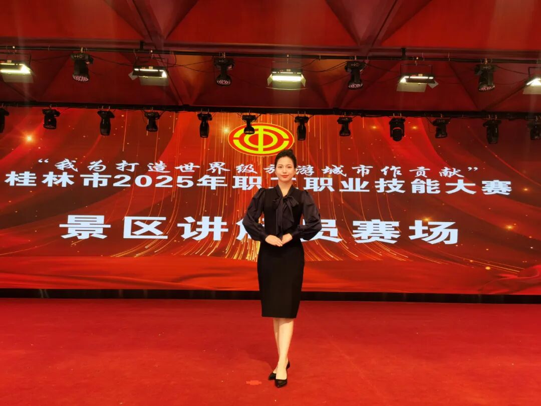 在刚刚结束的桂林市2025年职工职业技能大赛中,七星景区金牌导游胡盈盈,凭借扎实的专业功底、精湛的讲解技艺、卓越的服务素养和出色的现场发挥,在全市众多优秀选手中脱颖而出,获得第二名的优异成绩!